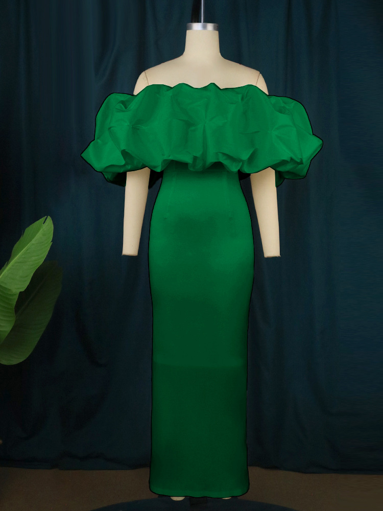 French Oversized Flower Top Off-the-Shoulder Solid Color Formal Maxi Party Dress to 4X Plus Size