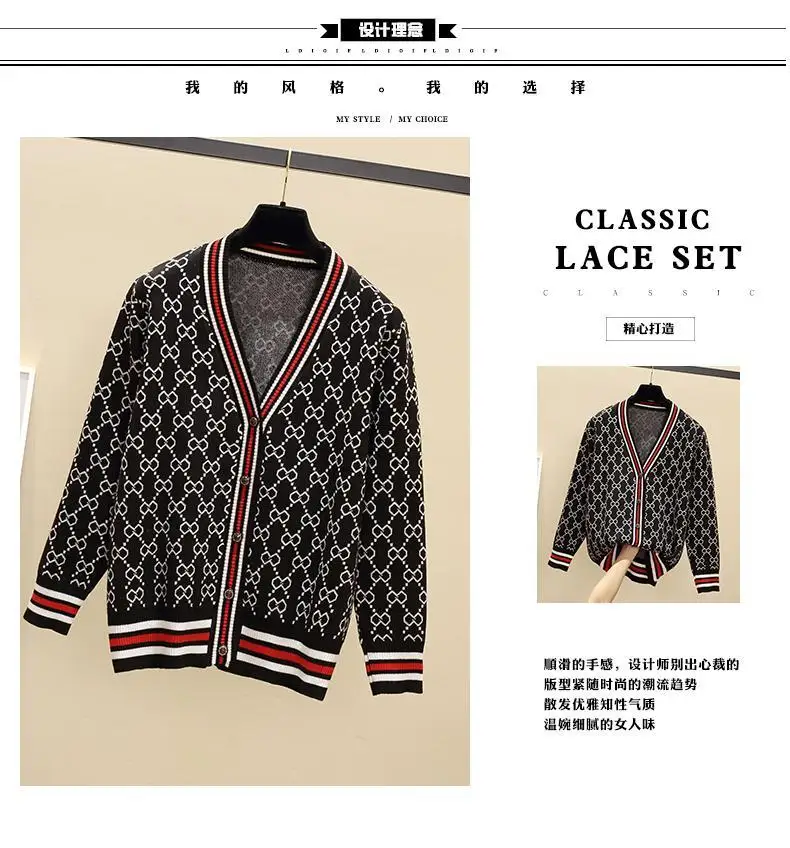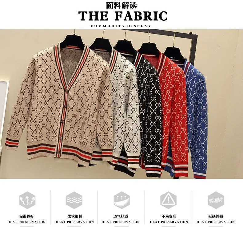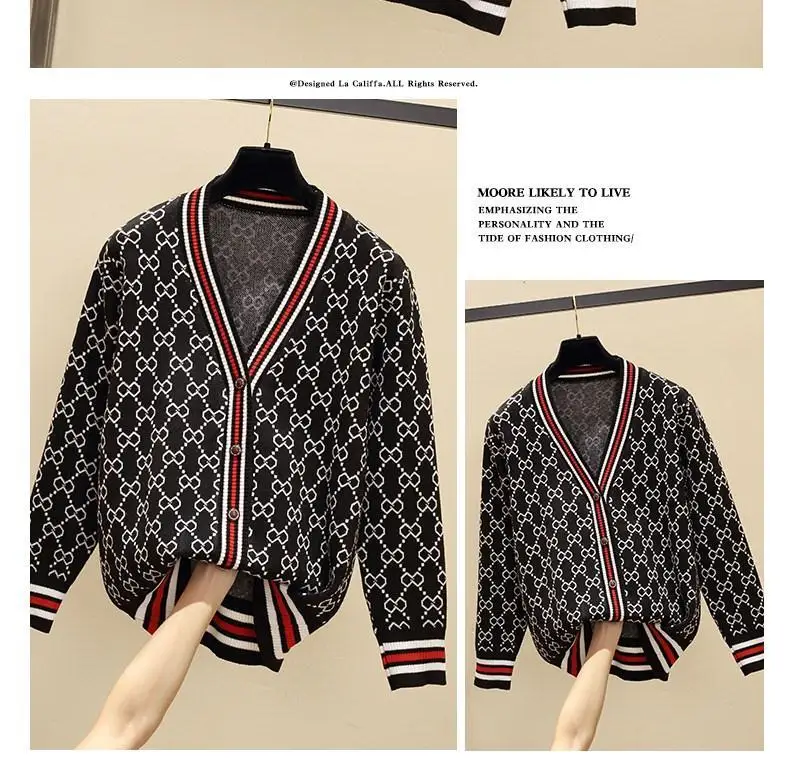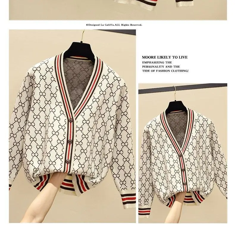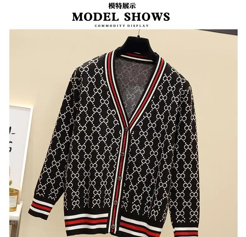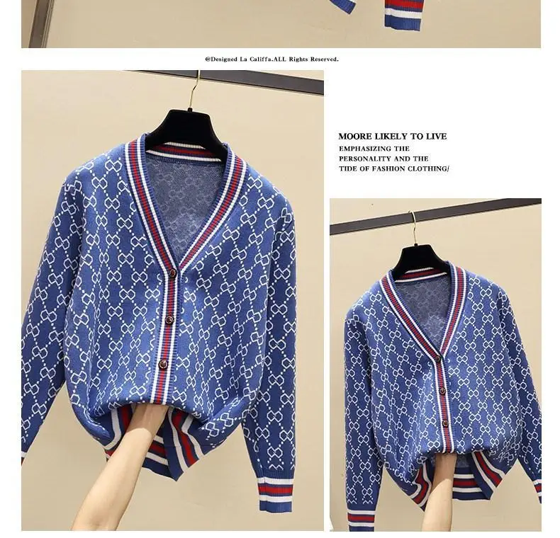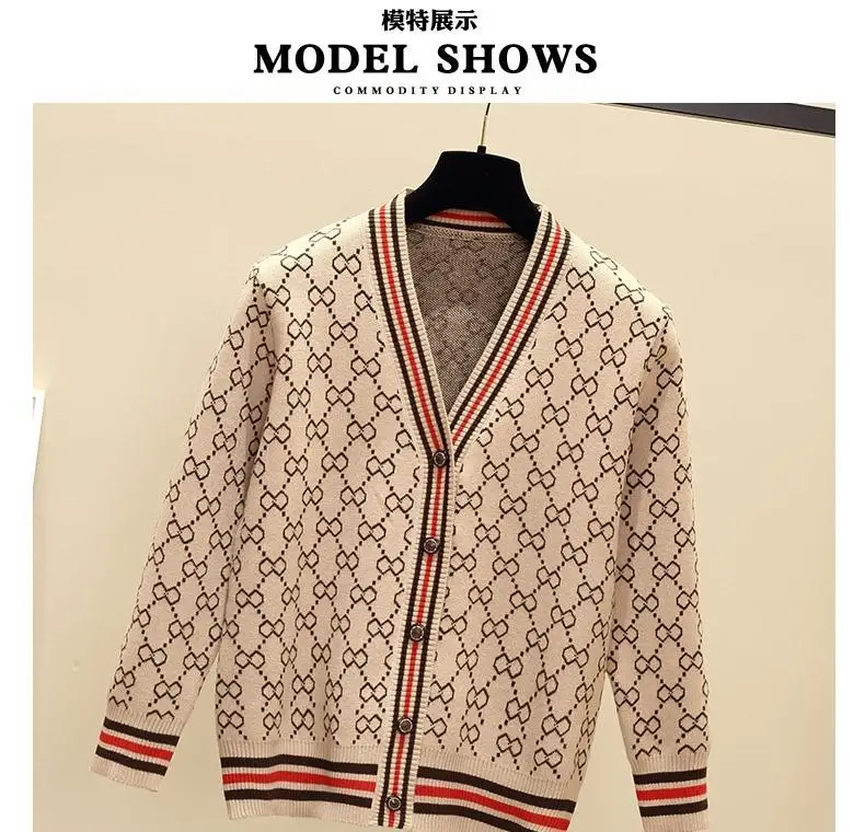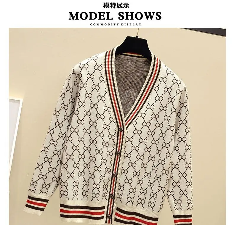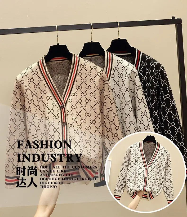 Jacquard Monogram Print Long Sleeve Jacket Button Ladies Sweater