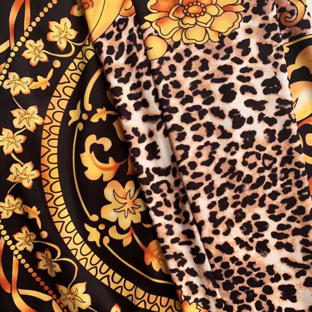 Floral Leopard Baroque Print Long Sleeve Zipper Bomber Jacket + Skin Tight Leggings Women's 2-Piece Set