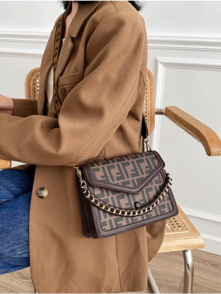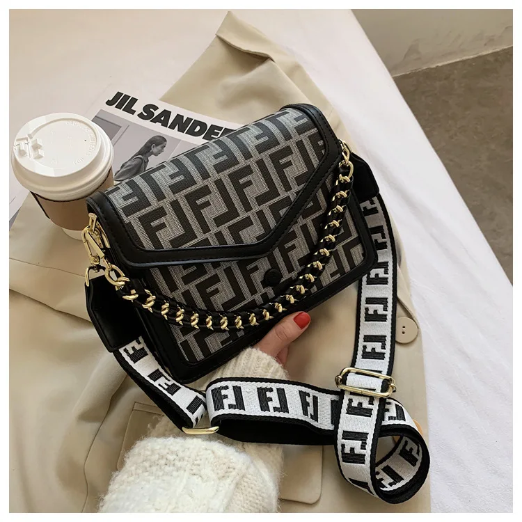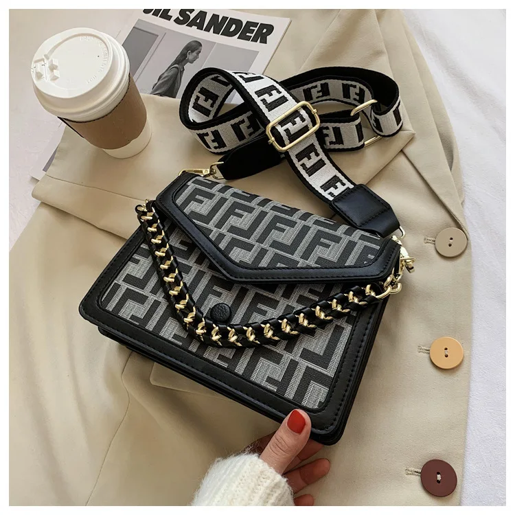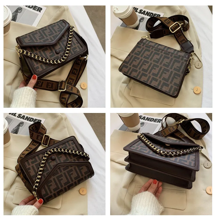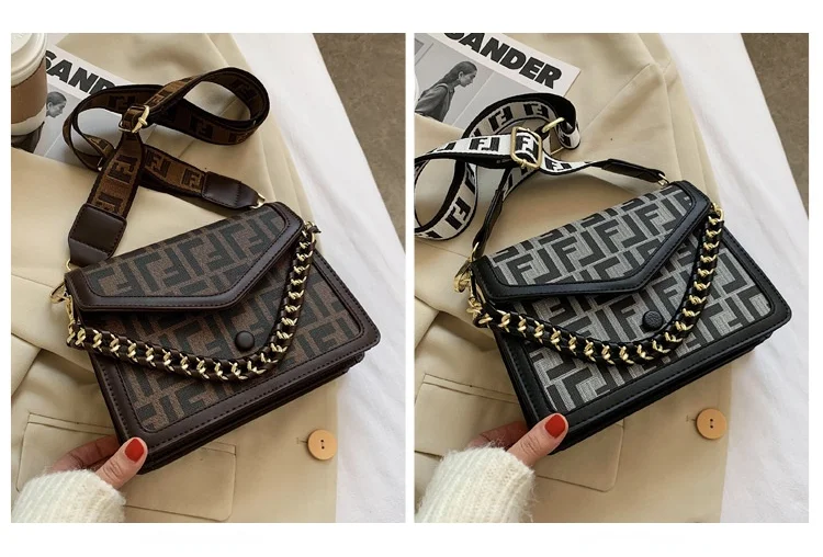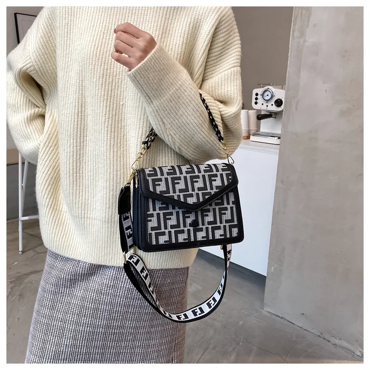 Women's Classic F Letter Monogram Hard Portable Messenger Bag Small Square Crossbody Purse