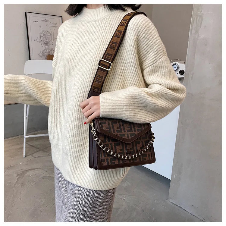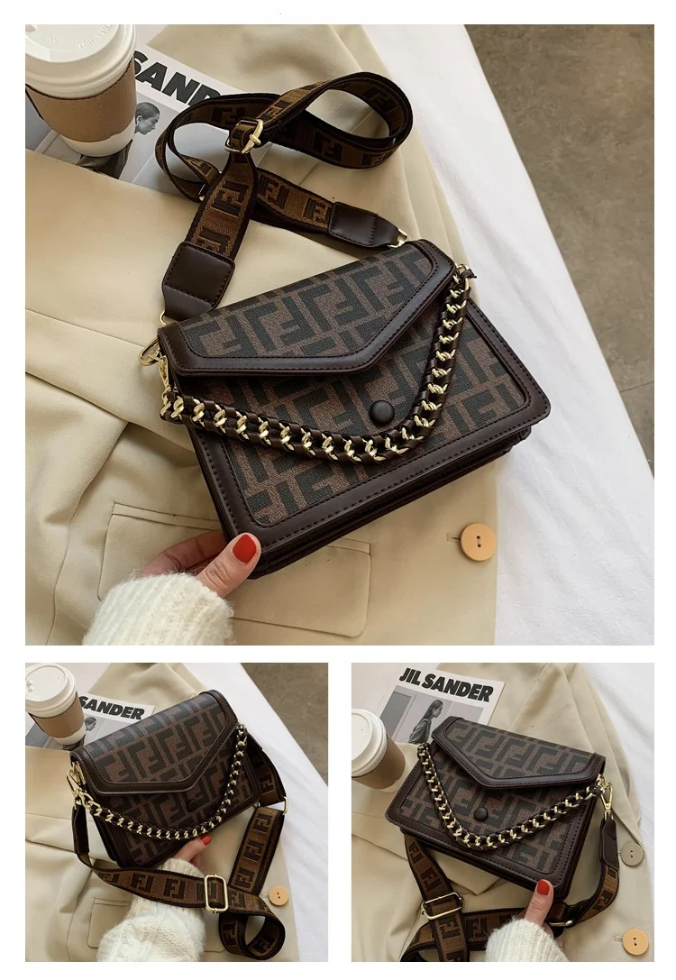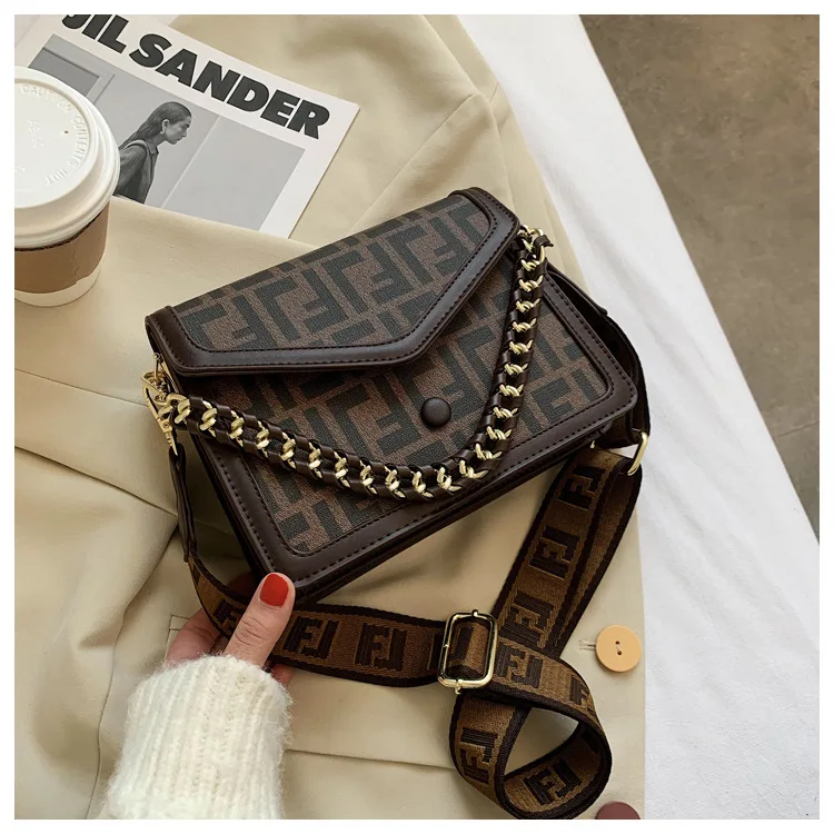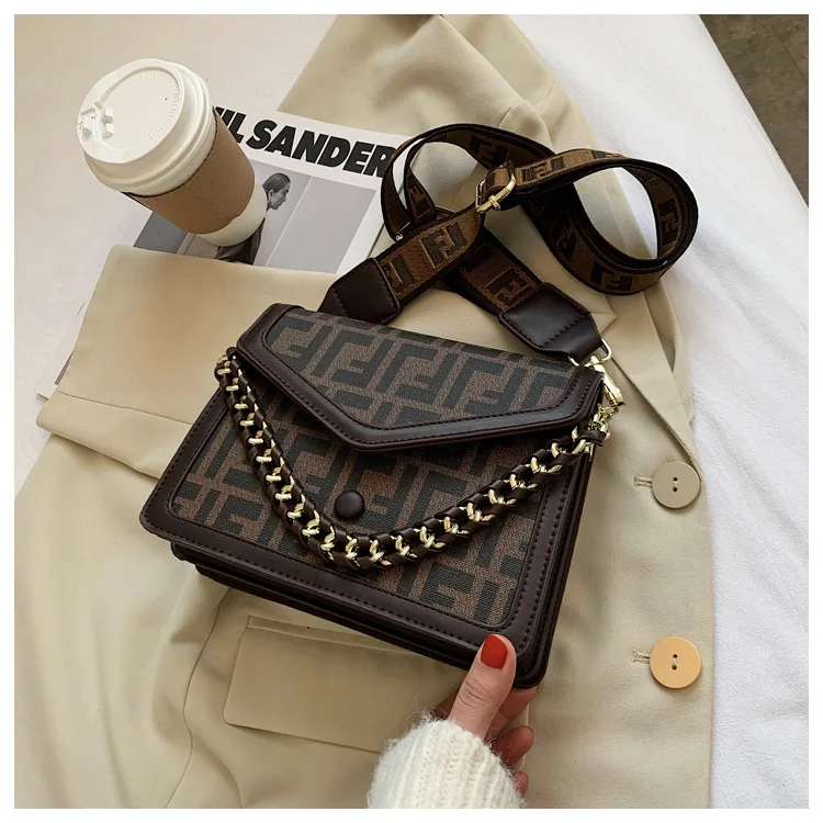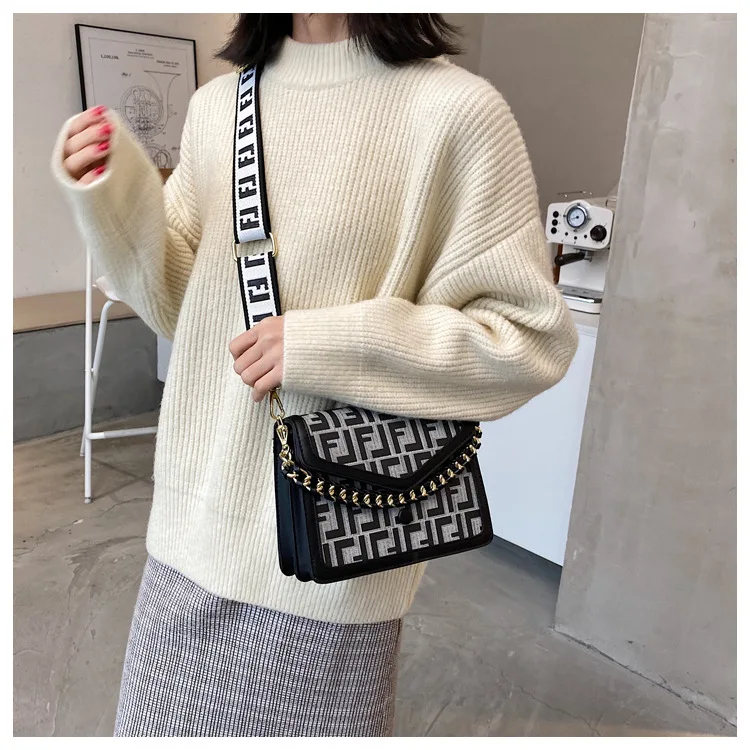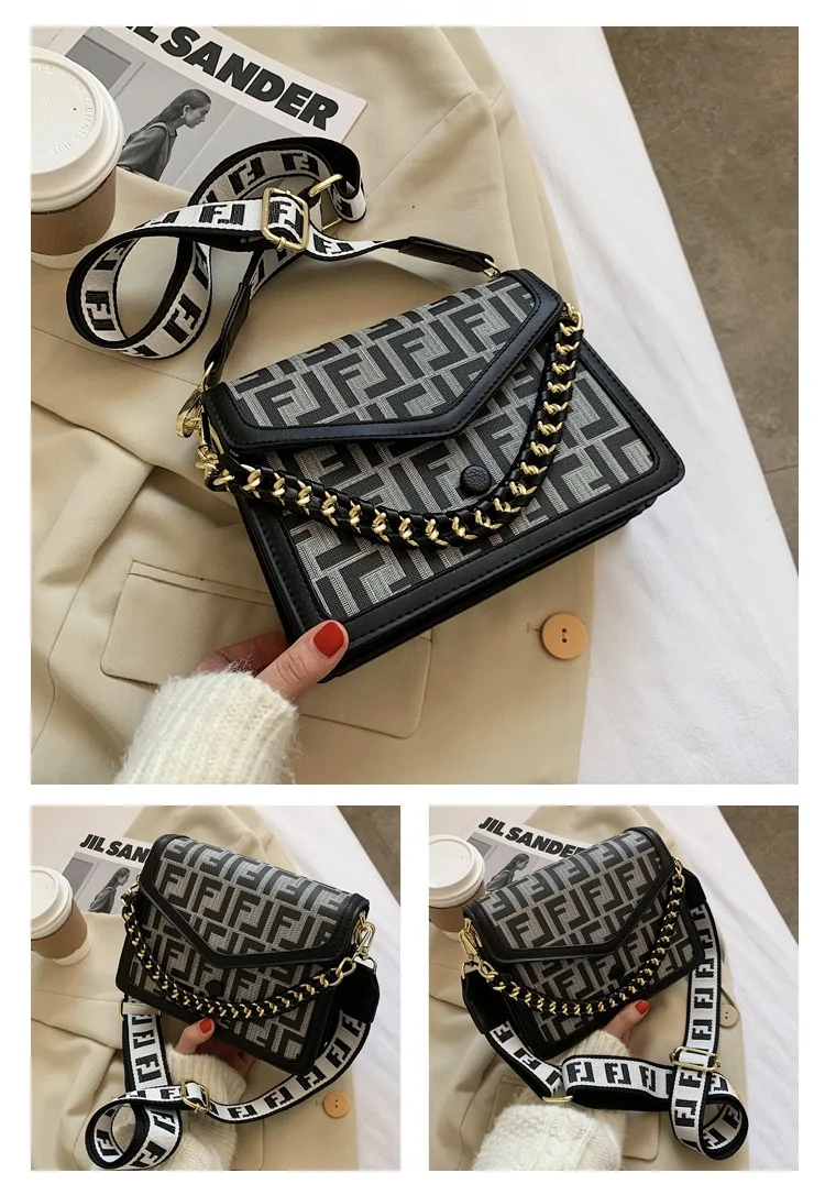 Women's Classic F Letter Monogram Hard Portable Messenger Bag Small Square Crossbody Purse