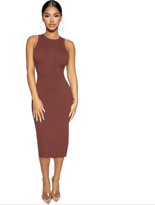 V-Neck Sleeveless Slim Fit Off Shoulder Dress Solid Spaghetti Strap Dress