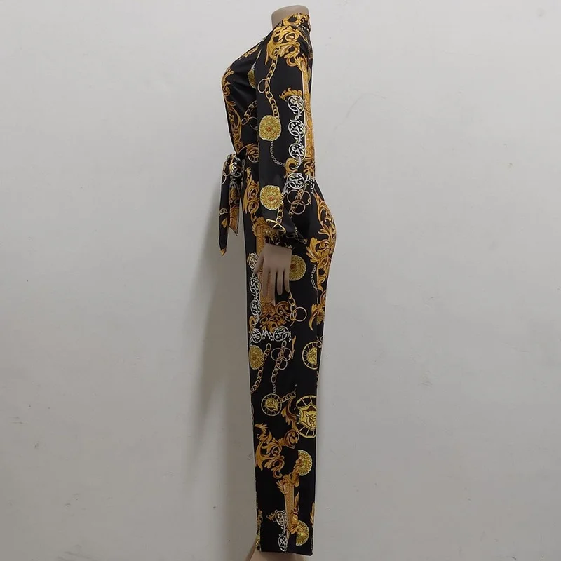 Tied Waist Long Sleeve Buttoned Jumpsuit