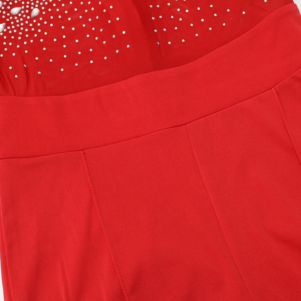 High Collar Hot Drill Mesh Shoulder Long Sleeve Jumpsuits OR Dresses Plus to 2X