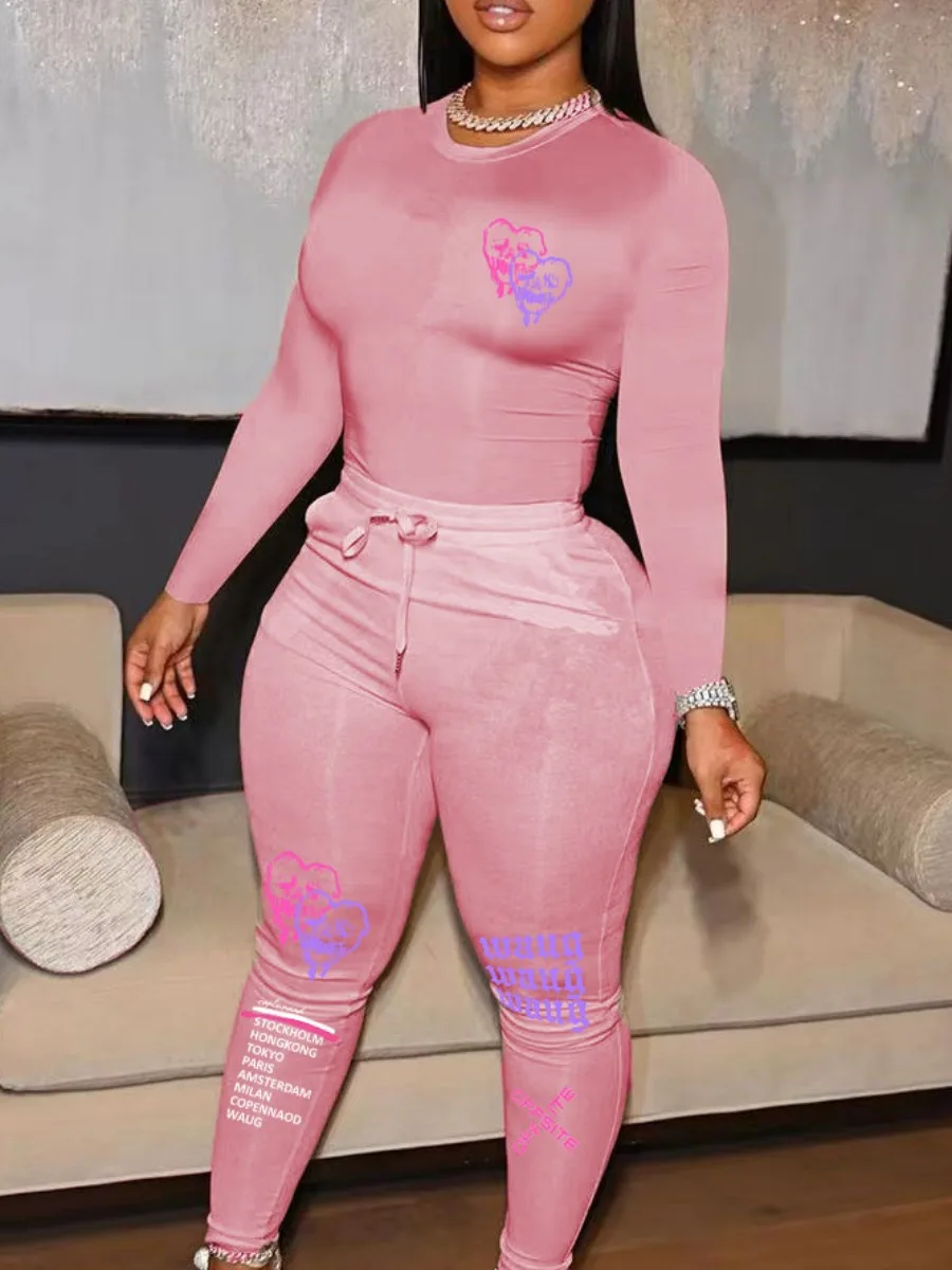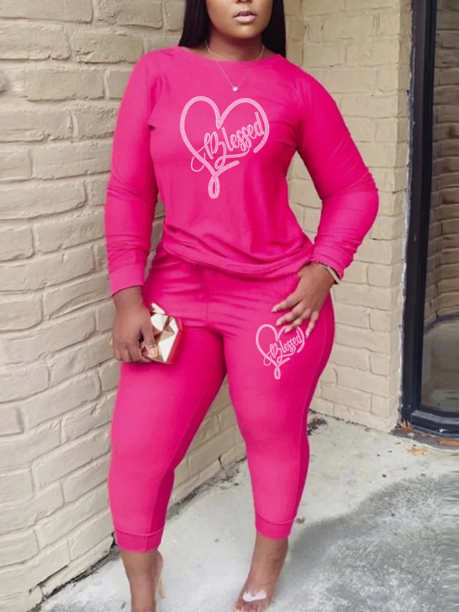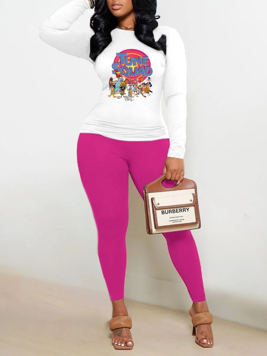 Tune Squad /Heart / IDK IDC IDGAF Printed Long Sleeve Women's O-Neck T-Shirt + Pants 2-Piece Set to 5X Plus Size