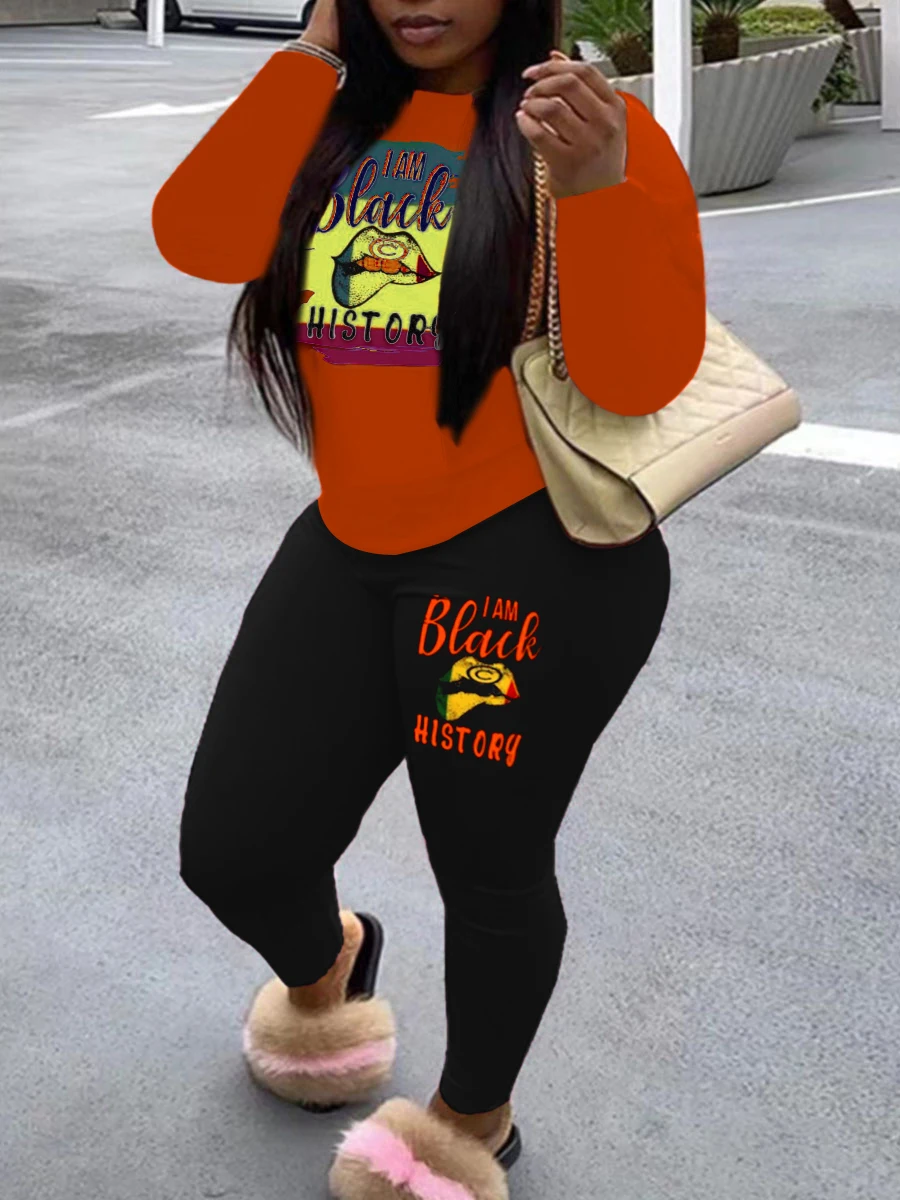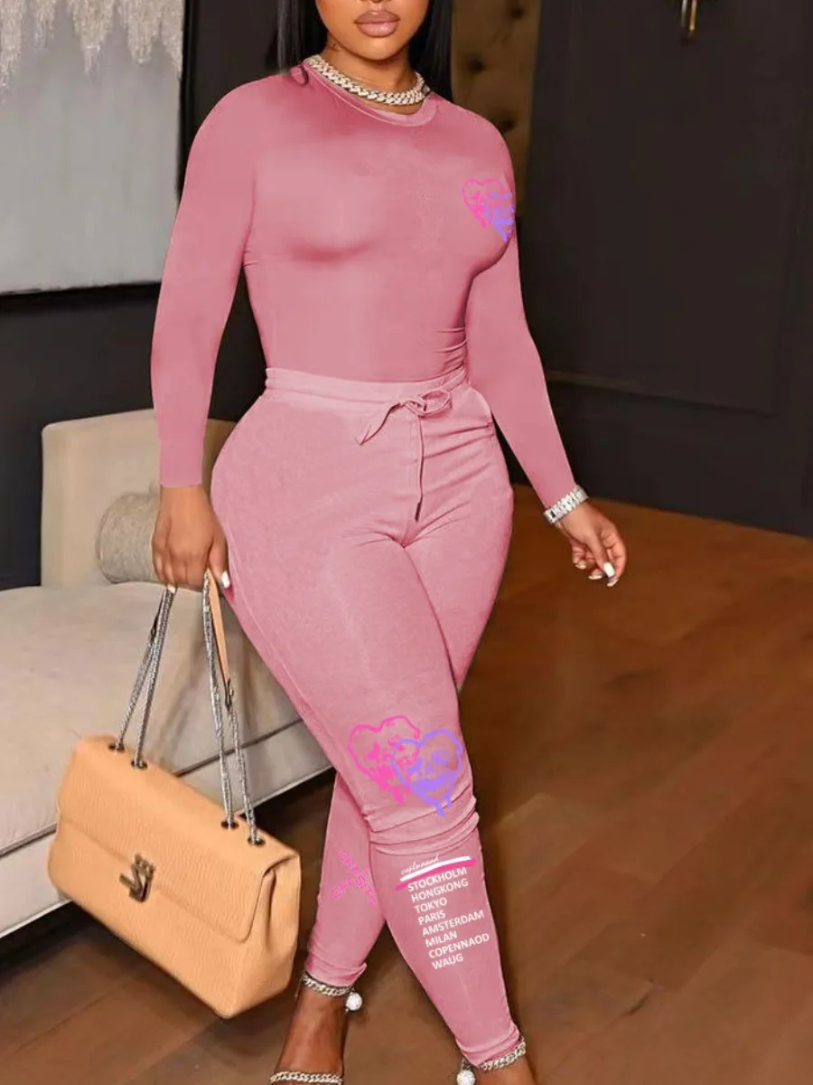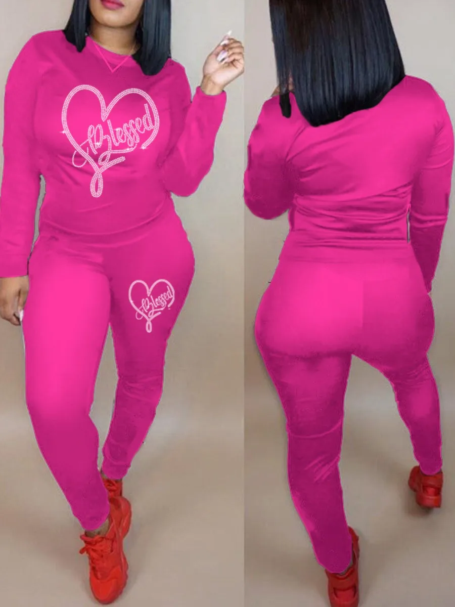 Tune Squad /Heart / IDK IDC IDGAF Printed Long Sleeve Women's O-Neck T-Shirt + Pants 2-Piece Set to 5X Plus Size