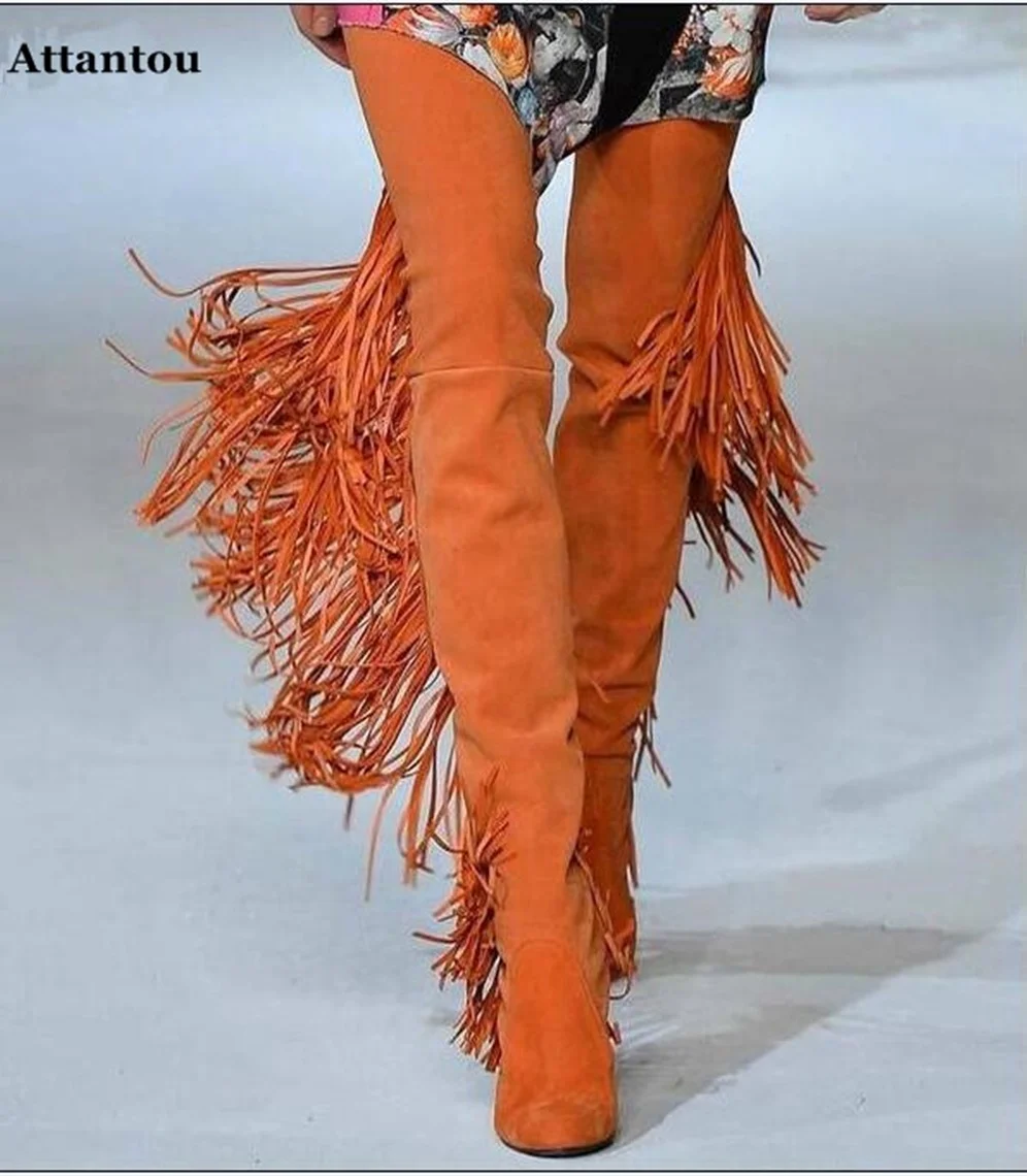 Suede Runway Solid Over-the- Knee Long Tassel Ladies Thigh High Boots