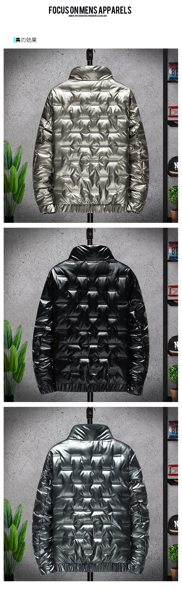 Men's Shiny Collar Warm Bomber Parka Waterproof Jacket