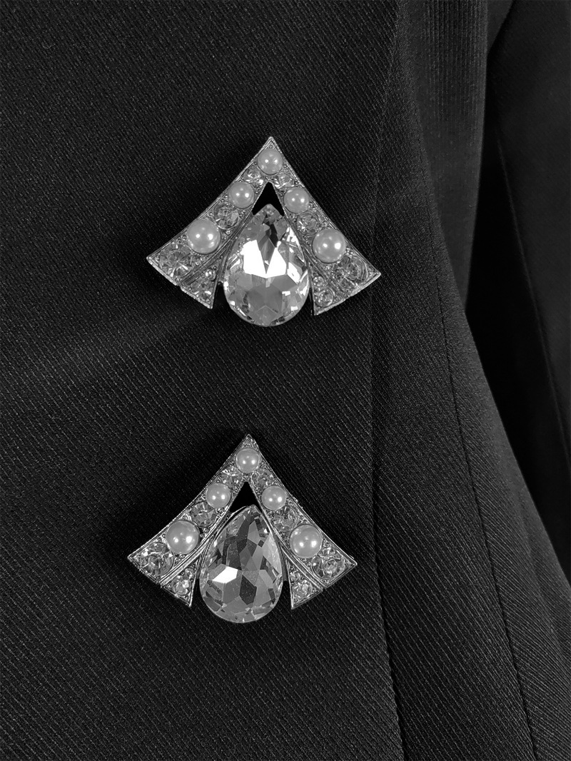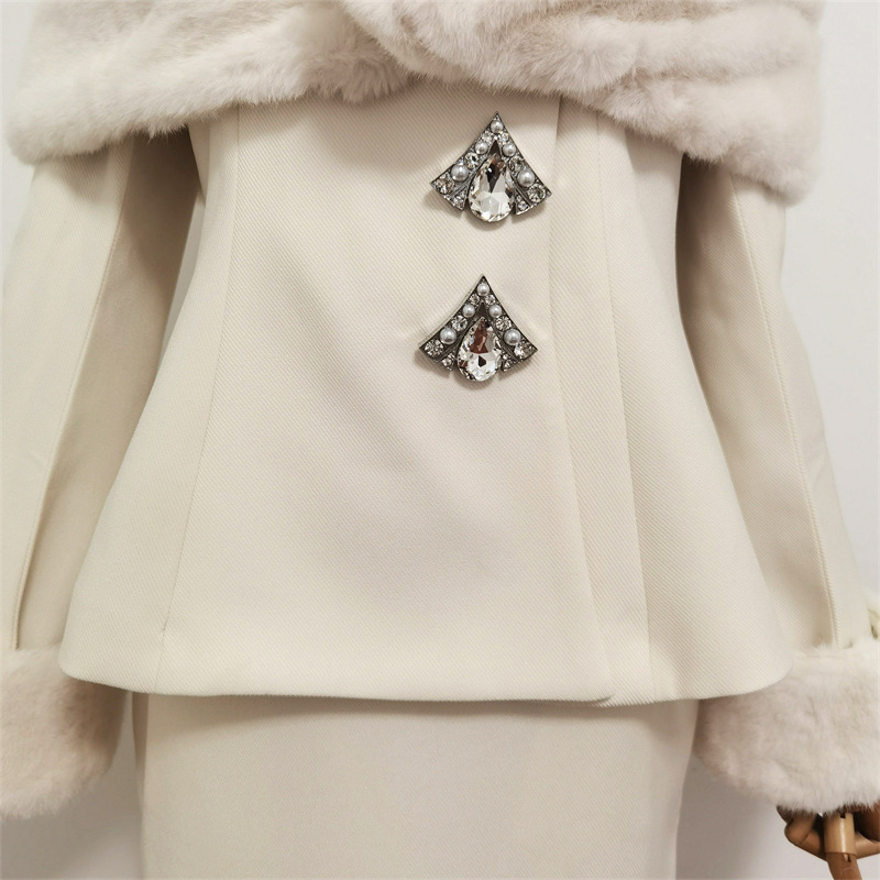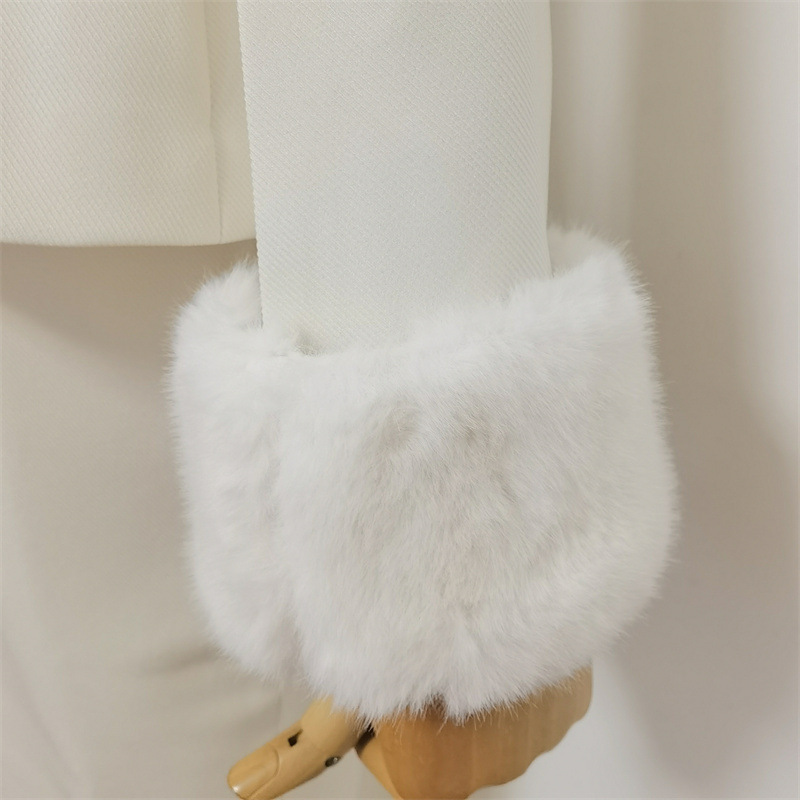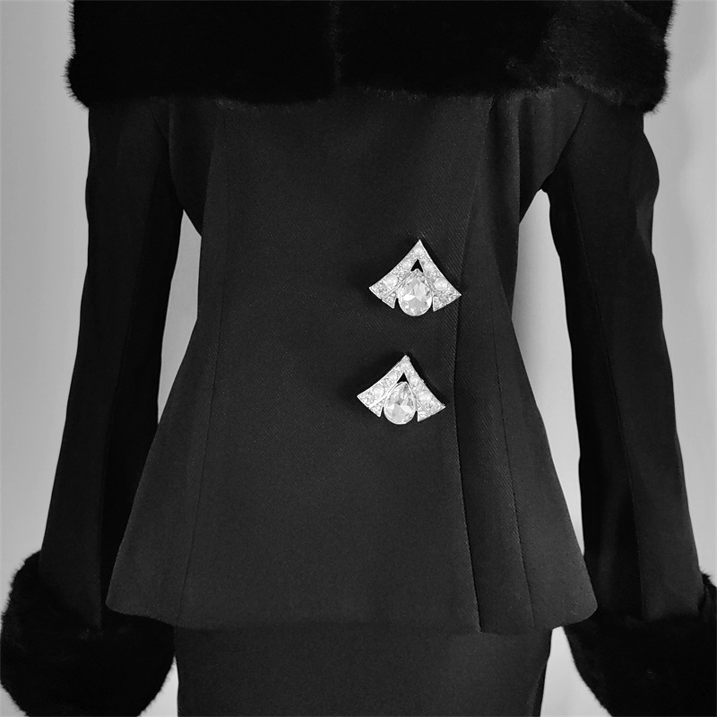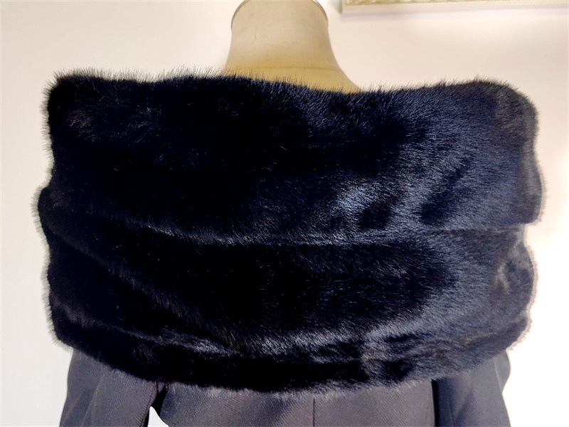 Designer Black Oversized Faux Fur Collar Long Sleeve Off-the-Shoulder Formal Suit Dress