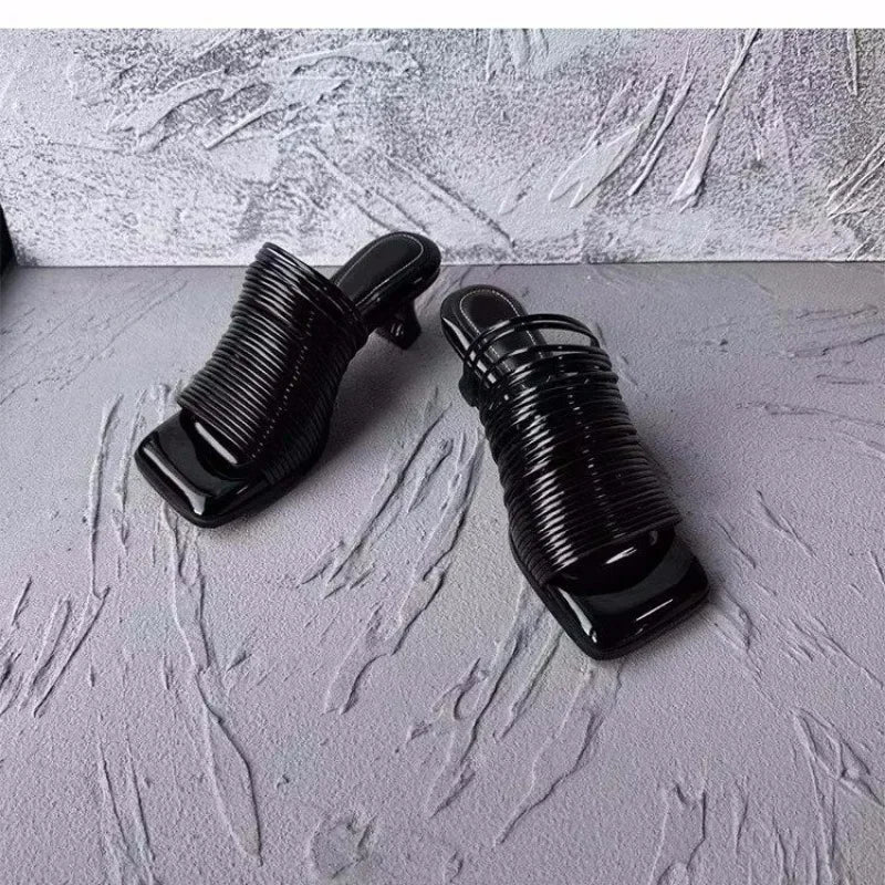 Metallic Square Toe Women's Solid Color Low Heel Sandals
