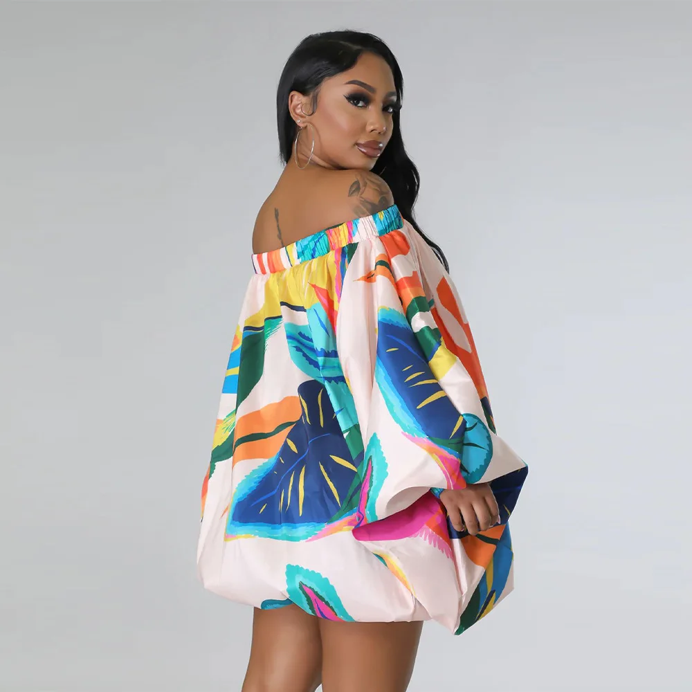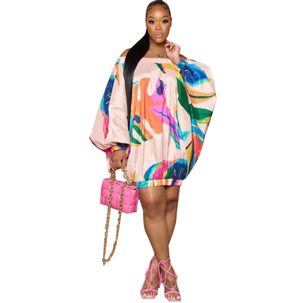 Slash Neck Batwing Sleeve Mini Dress Plus to XXXL