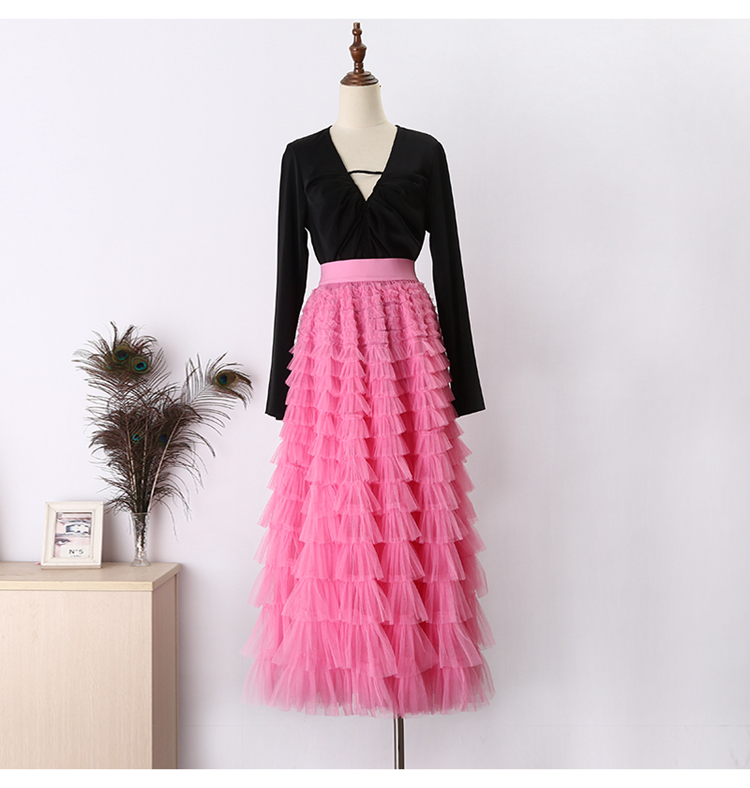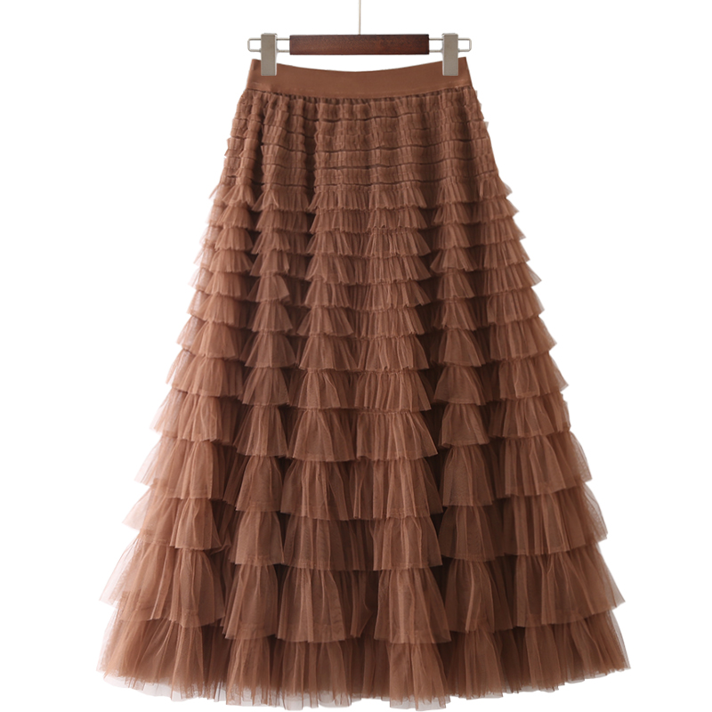 Ruffled Gauze Mesh Tutu Maxi Skirts