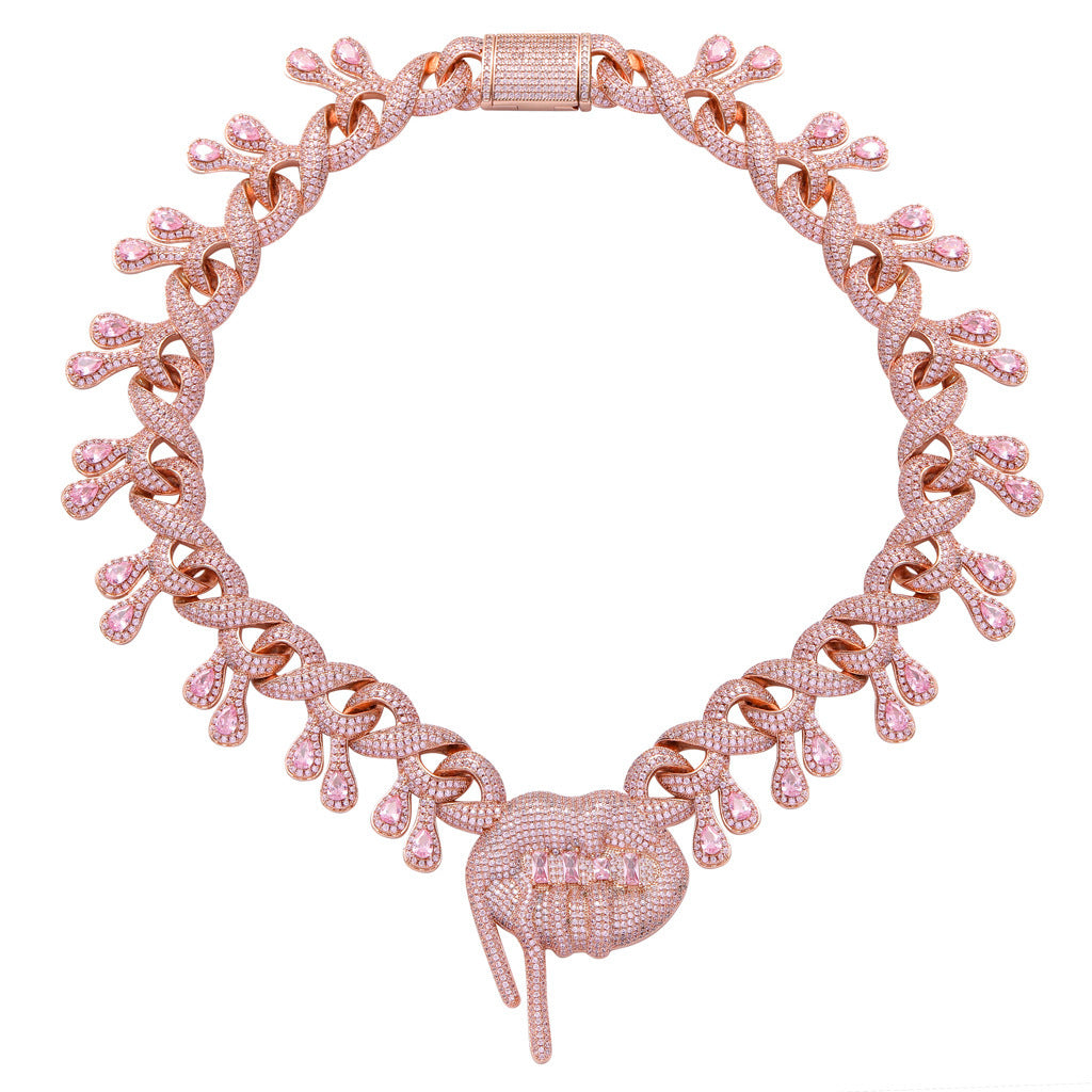 Metallic Lips Paint Dripping Design Pendant Hip-Hop Cuban Chain Necklace