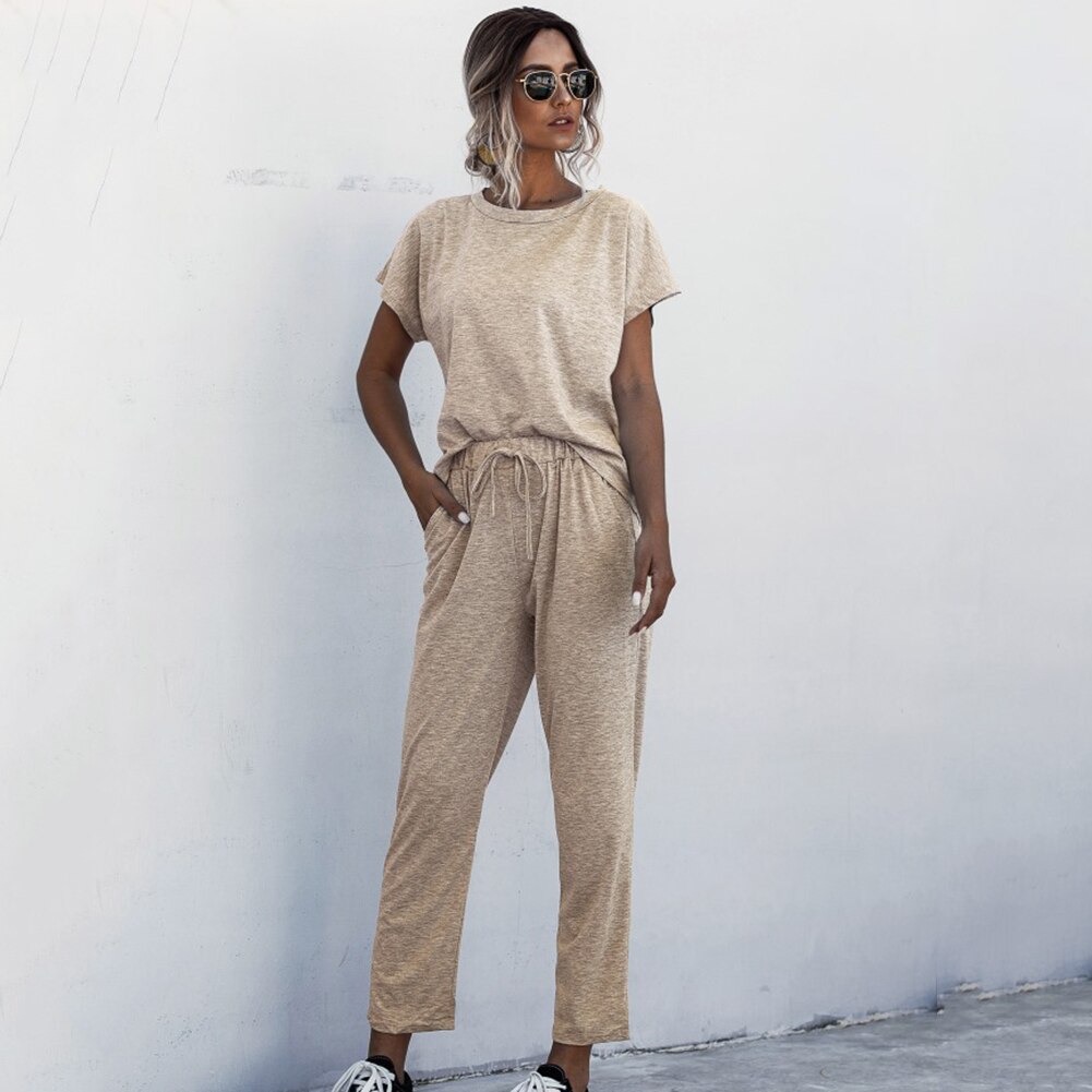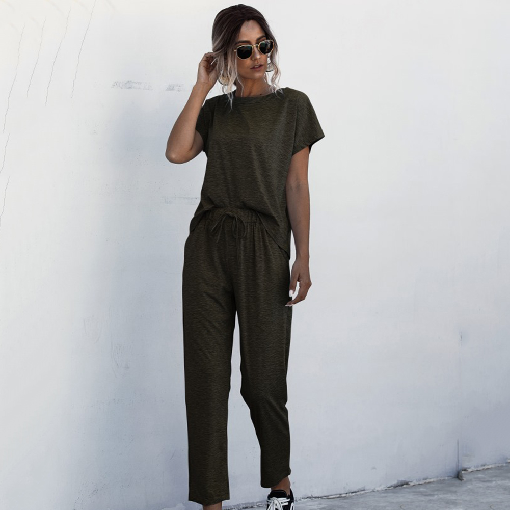 Round Neck Solid Color Short Sleeve Women's T-Shirt + Casual Pants 2-Piece Set to 3X Plus Size