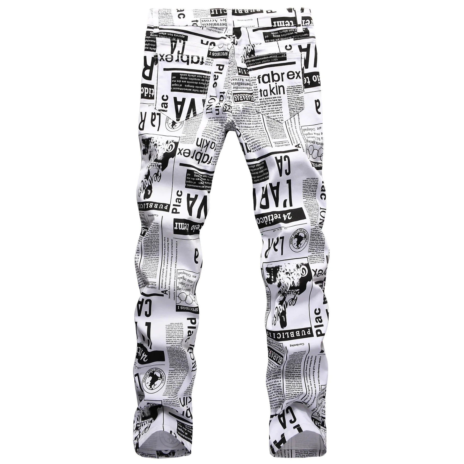 Men's Denim Black & White Newspaper Print Ruched Skinny Jeans