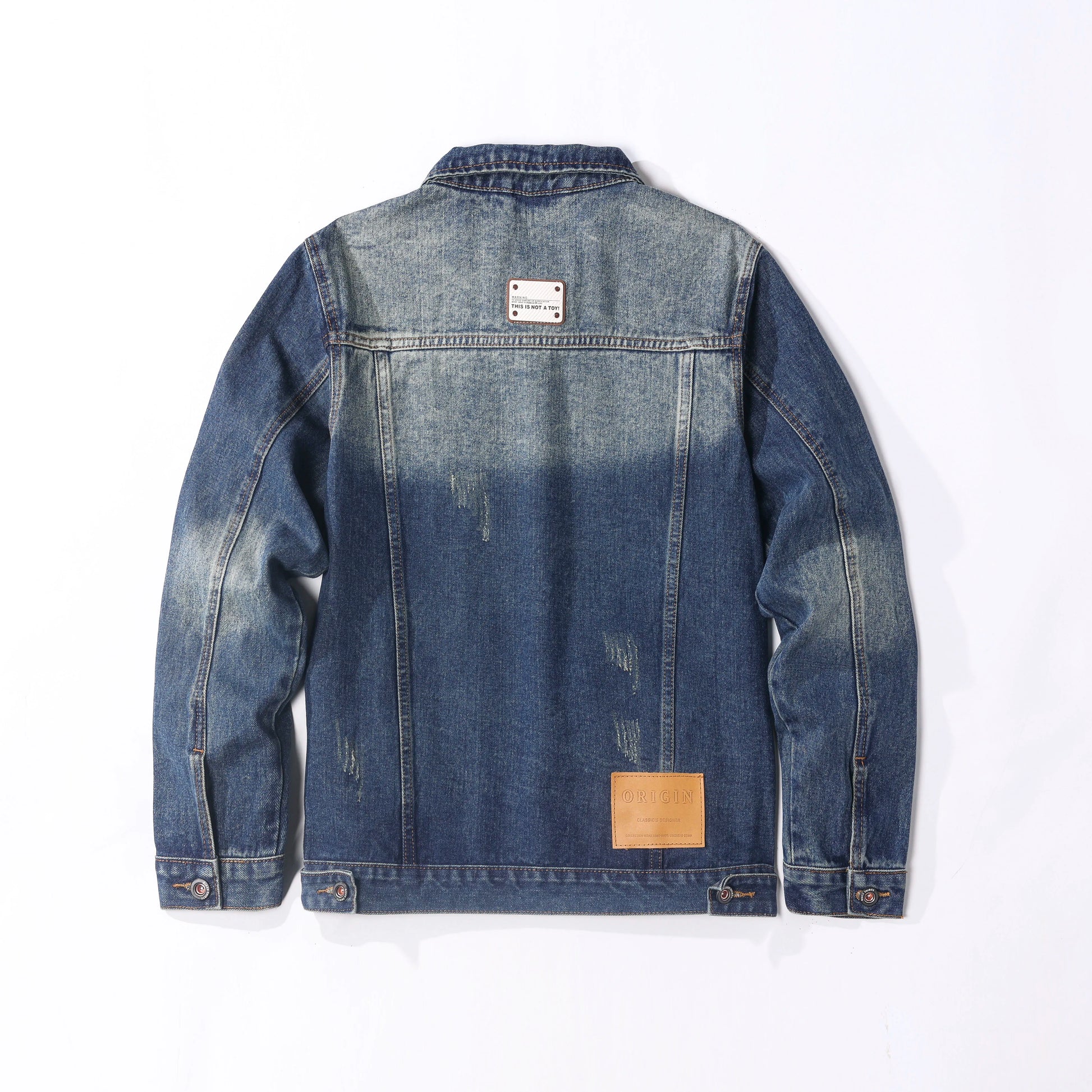 Men's Denim Patchwork Design Washed Gradient Colorblock Hip-Hop Streetwear Jean Jacket