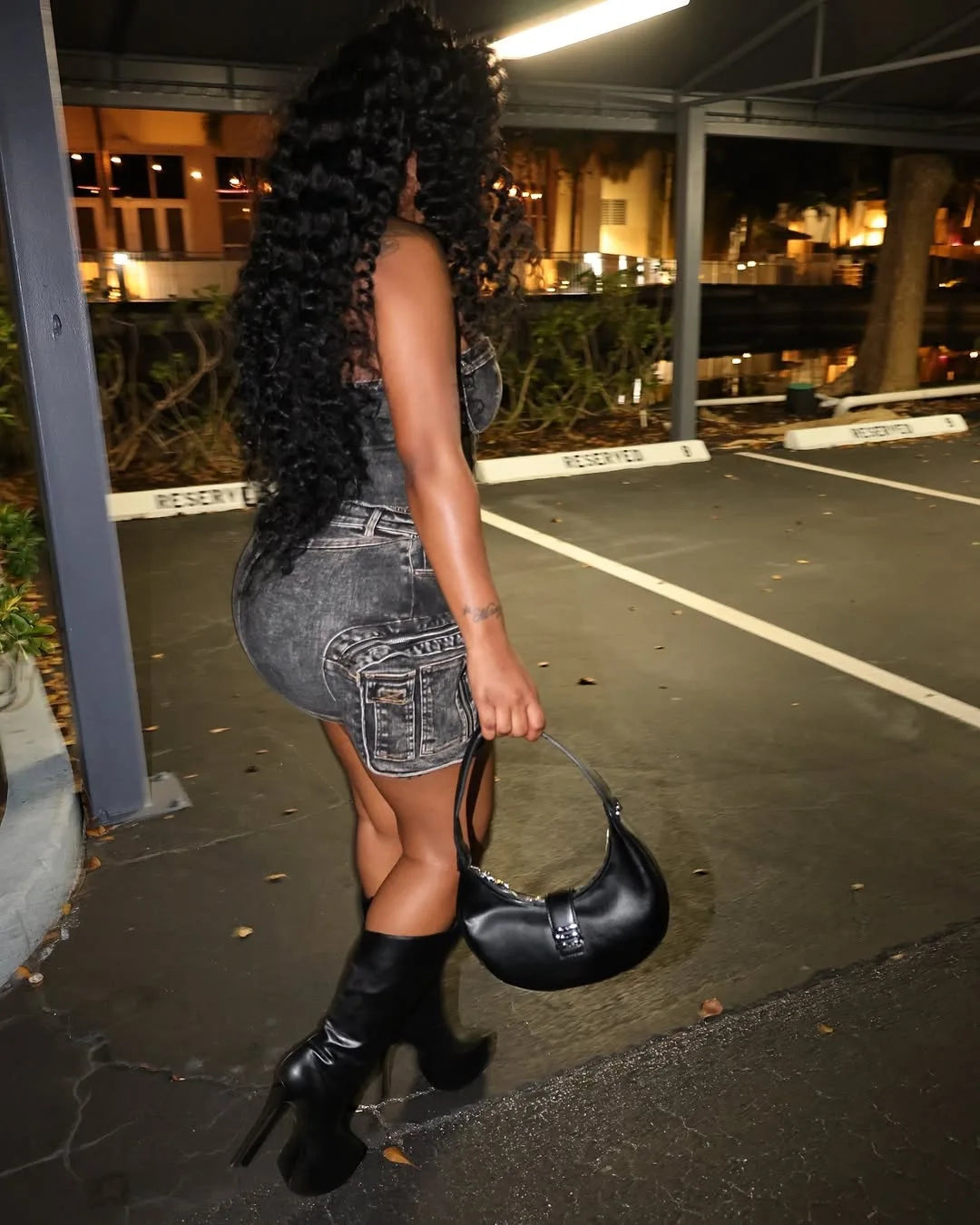Strapless Denim Women's Sleeveless Backless Crop Tube Top + Bodycon Streetwear Mini Jean Skirt 2-Piece Set
