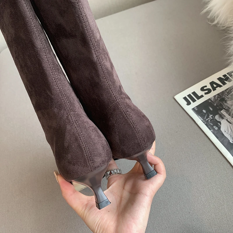 Knee High Stretch Zipper Pointed Toe Boots