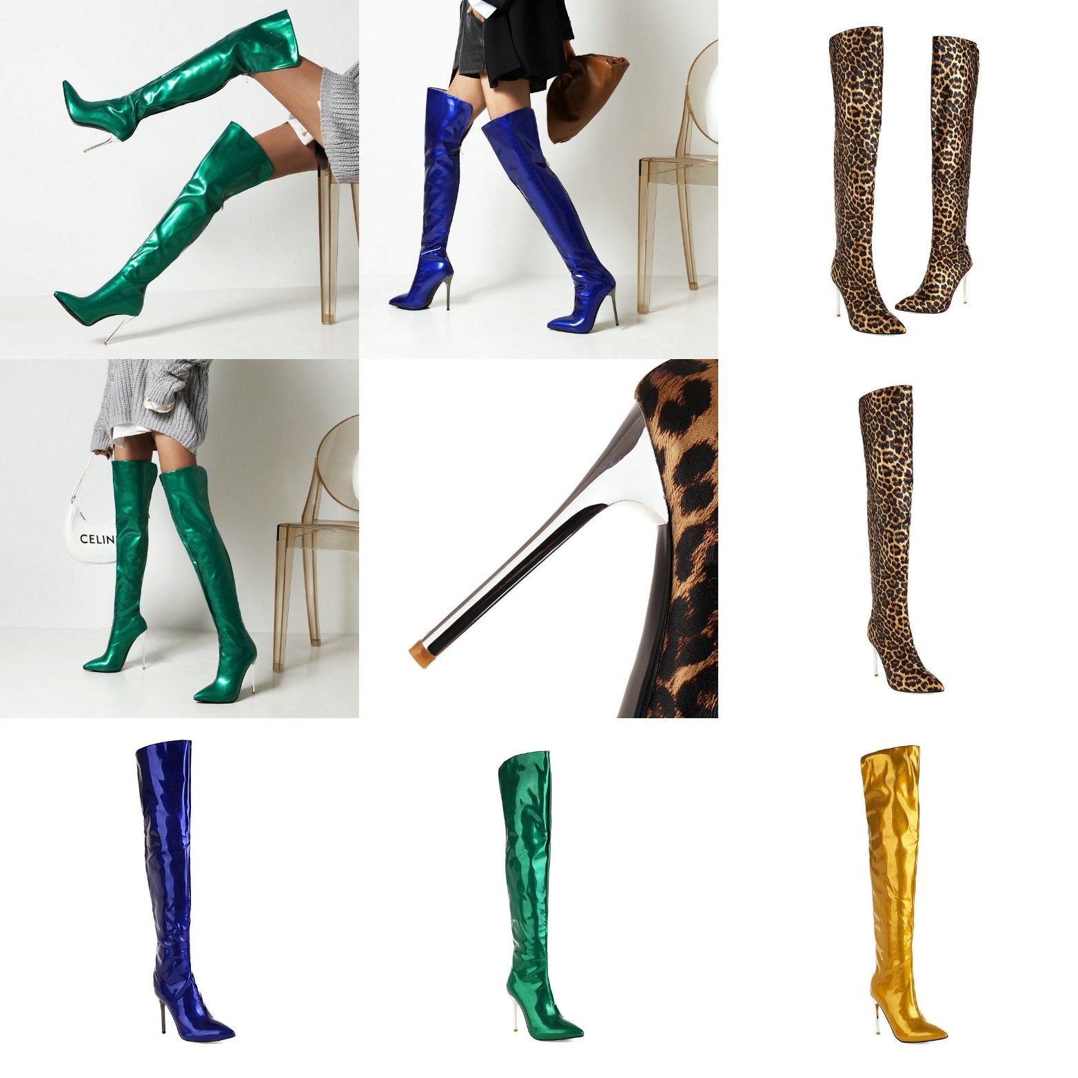 Solid/Leopard Women's Bright Leather Pointed Toe Metal Stiletto Heel Over-the-Knee Boots