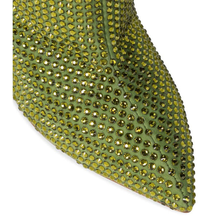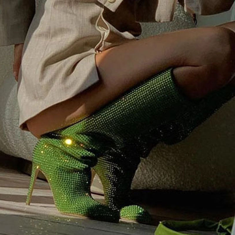 Sparkling Cashmere Rhinestone Pointed Toe Solid Color Women's Stiletto Heel Knee-High Boots
