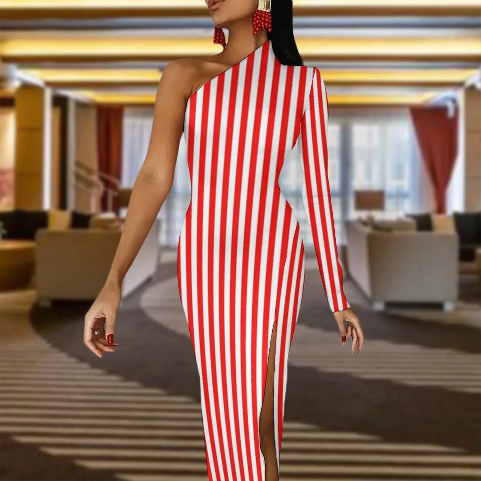 Striped/Rainbow Striped/American Flag Print One Sleeve Asymmetrical Bodycon Midi Dresses
