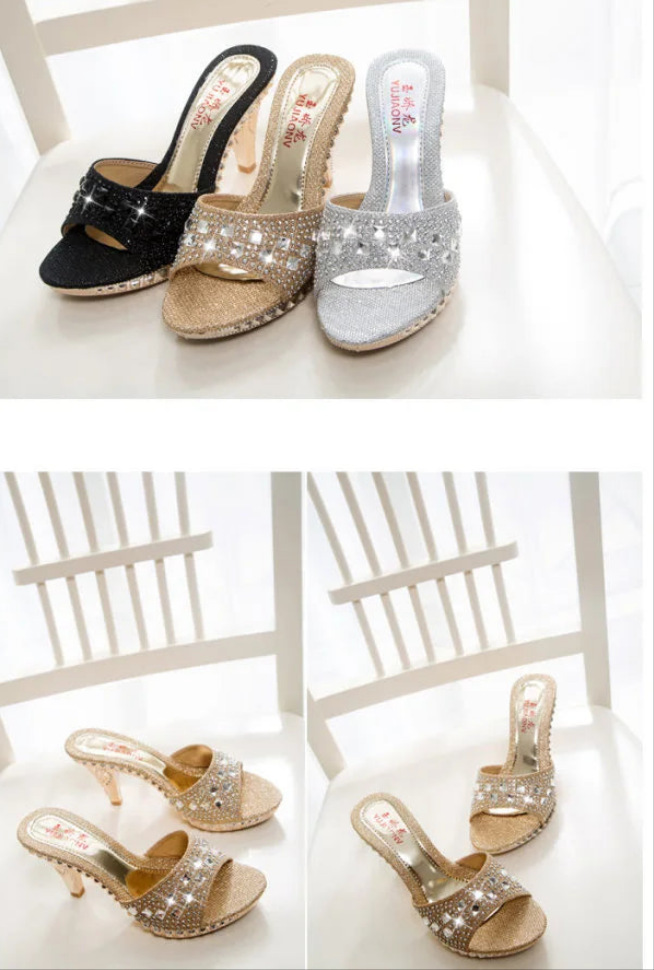 Rhinestone Rivet Design Women's Open Toe High Heel Sandal Pumps
