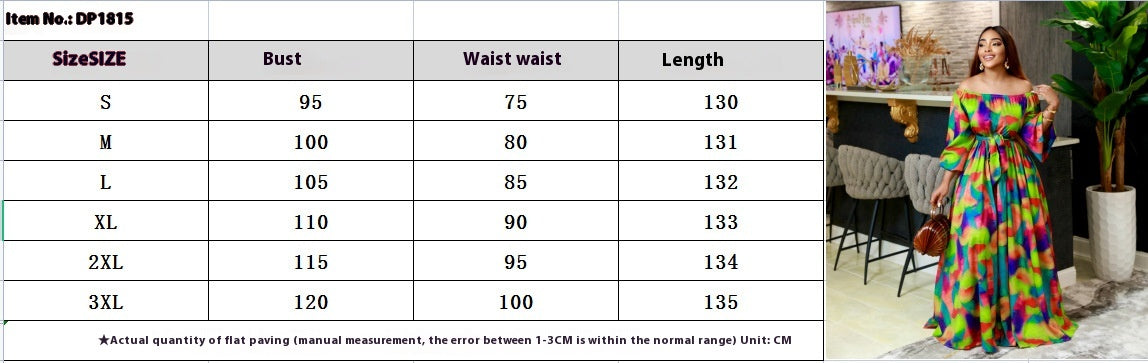 Geometric Multi-Colored Print Off-the-Shoulder Bubble Sleeve Flared Maxi Dress to 3X Plus Size