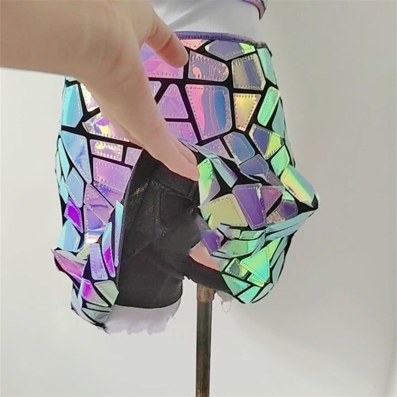 Metallic Silver Purple Geometric Print Sleeveless Crop Top + Mini Skirt 2-Piece Set