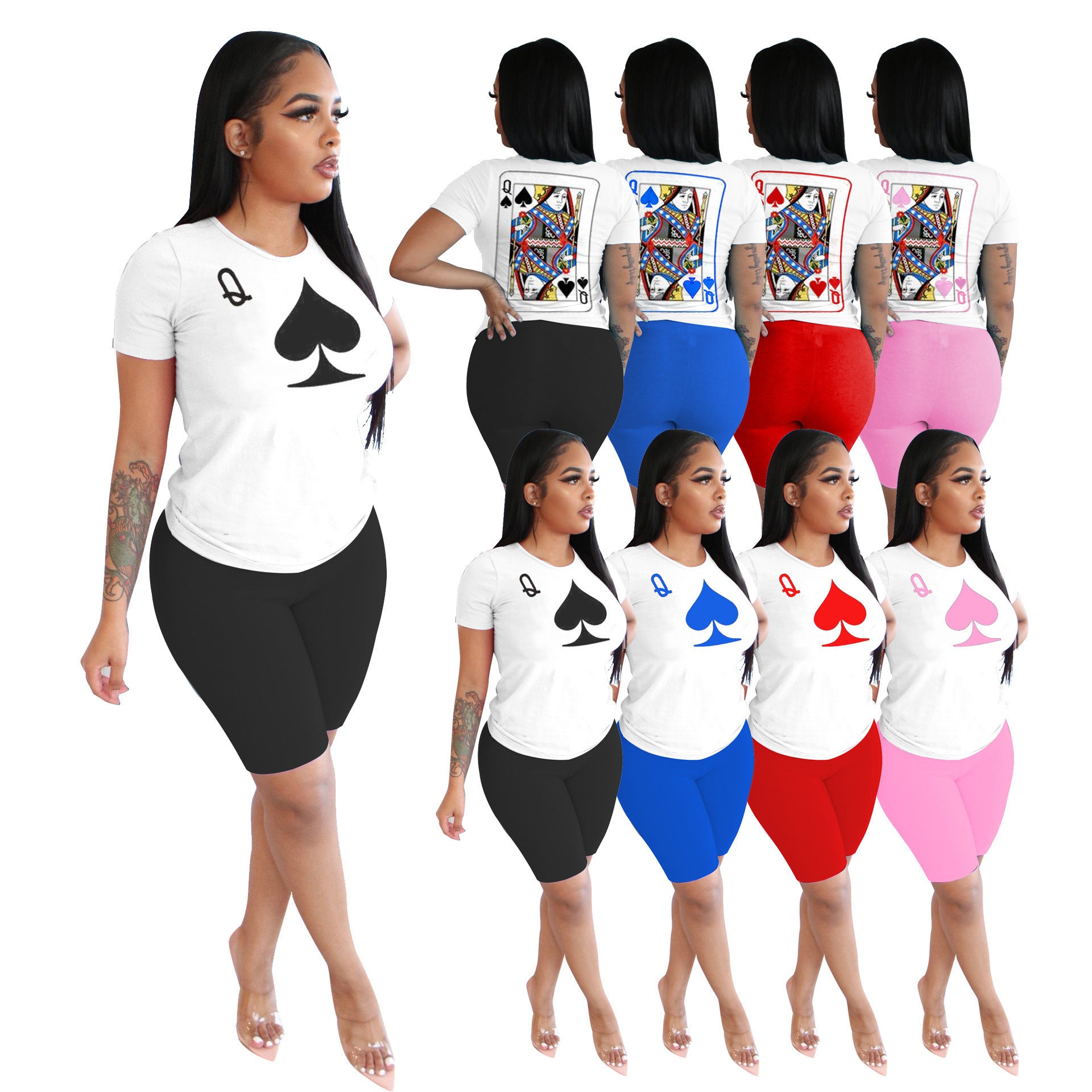 Queen of Spades Women's Short Sleeve T-Shirt + Biker Shorts 2-Piece Set