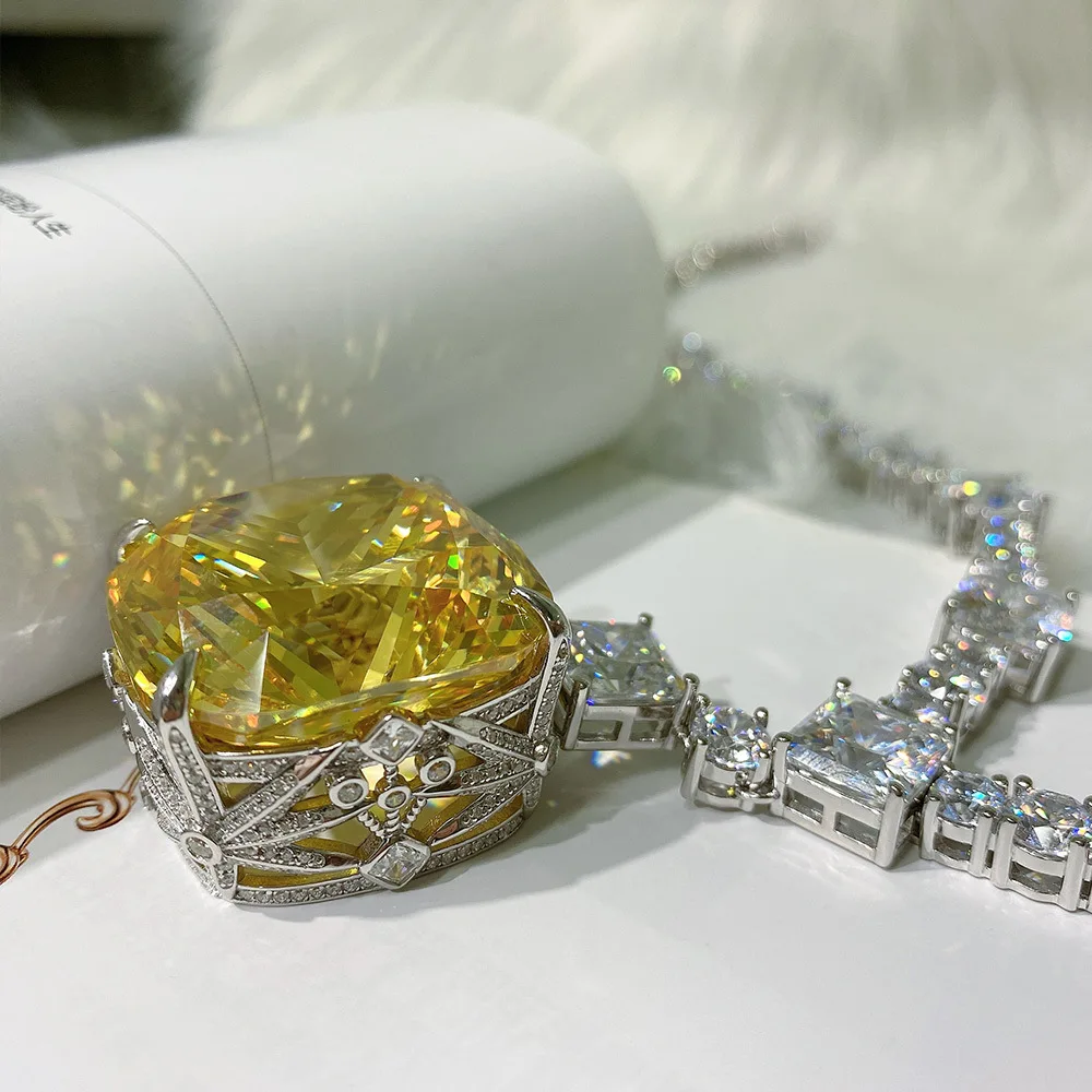 Wong Rain 100% 925 Sterling Silver Created Moissanite Citrine Gemstone Wedding Cocktail Pendent Necklace Fine Jewelry Wholesale