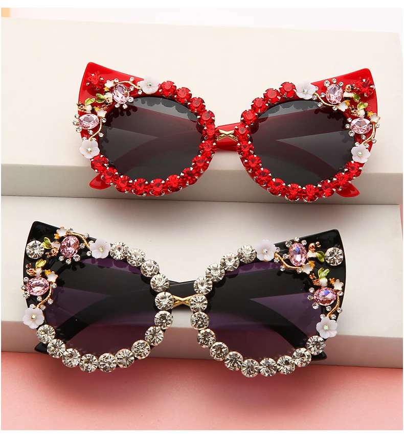 Retro Crystal Stud Cat Eye Anti-UV Sunglasses