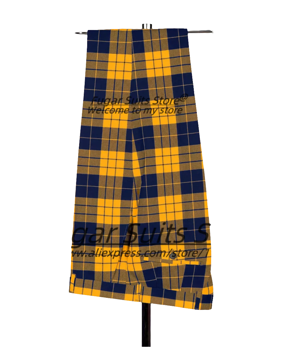 Men's British Plaid Gold Button Detail Double Breasted Tuxedo Blazer Jacket + Pants Formal Prom/Party/Wedding Suit