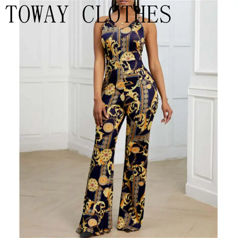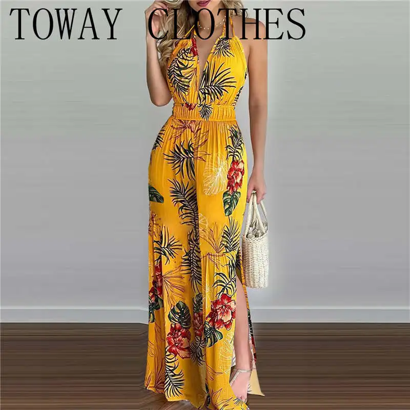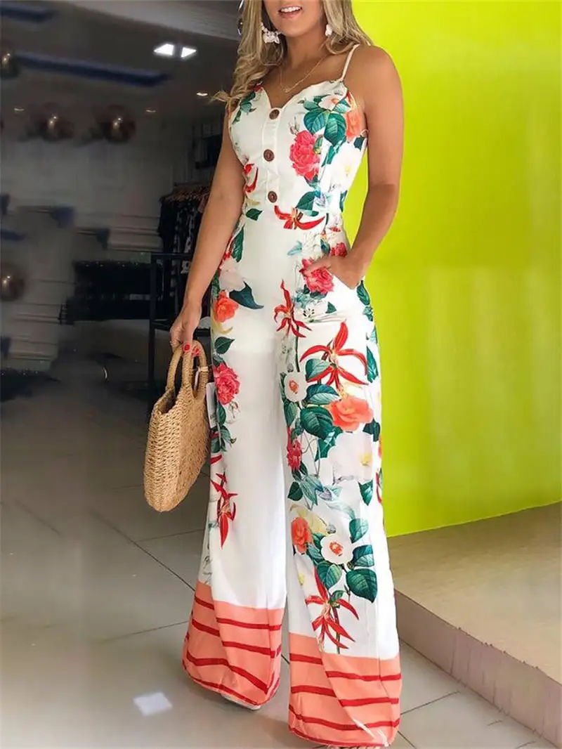V-Neck Spaghetti Strap Open Back Sleeveless Floor-Length Jumpsuit