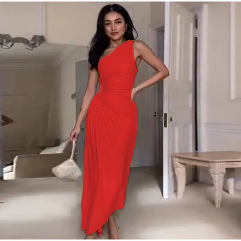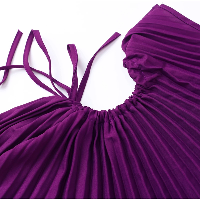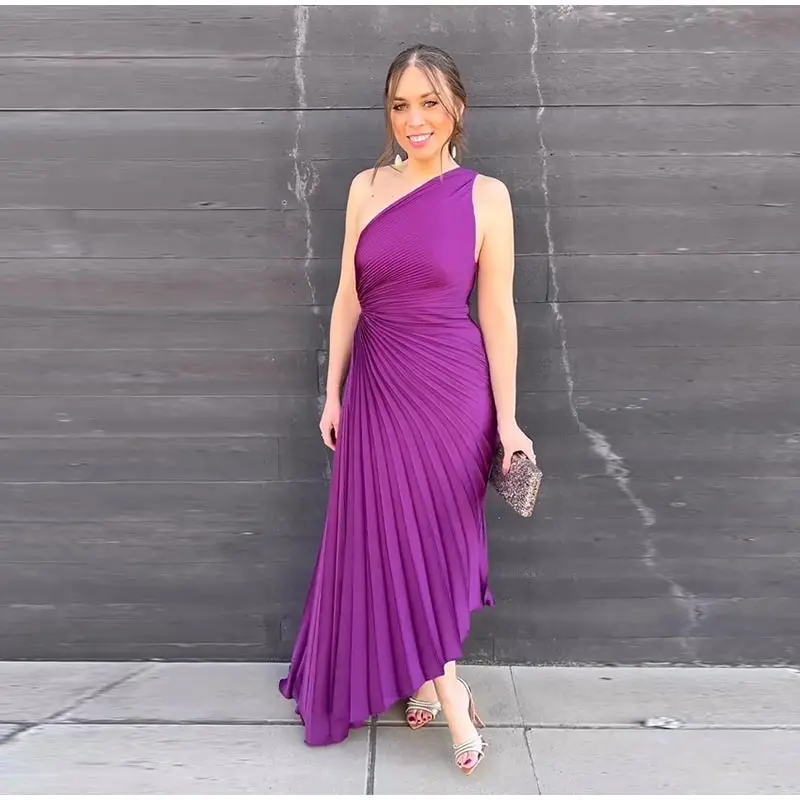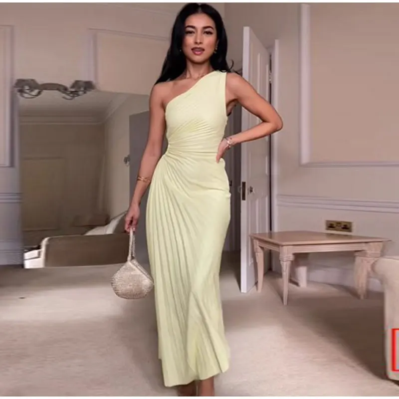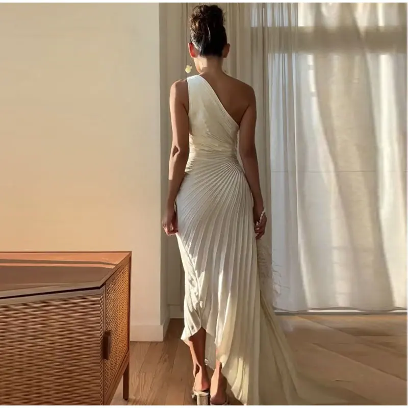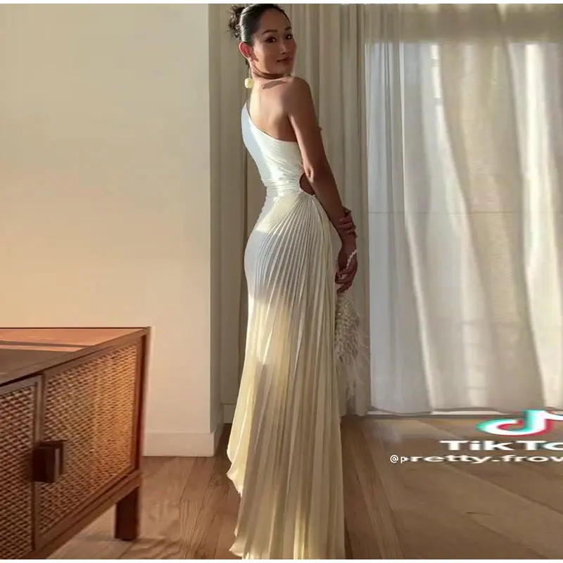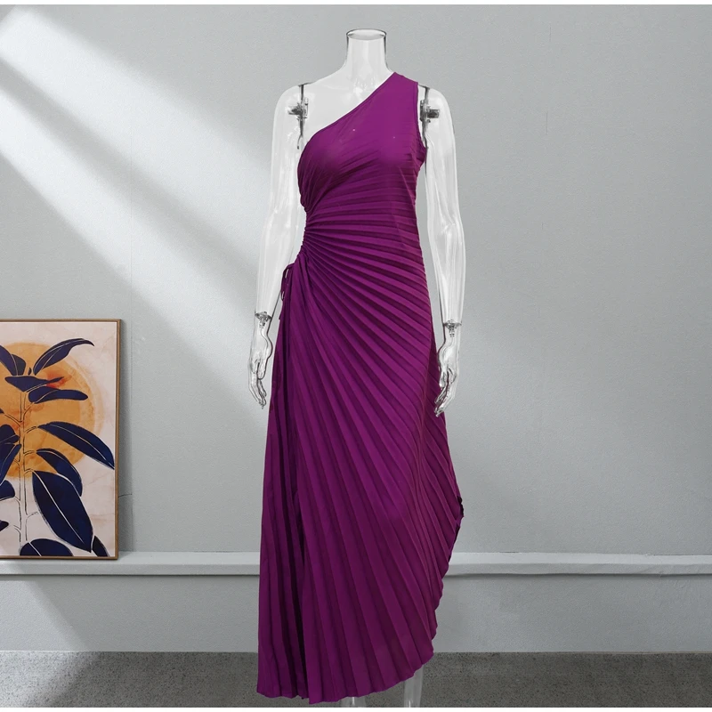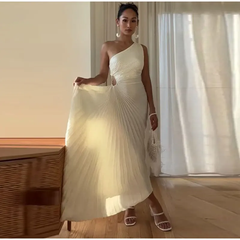Irregular One Shoulder Strap Pleated Hollow Out Dress