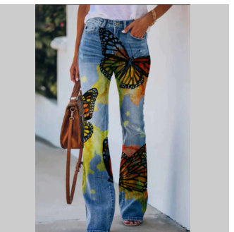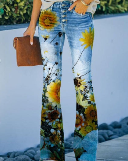 Flower Garden/Sunflower/Butterfly Print Women's Bootcut Skinny Jeans