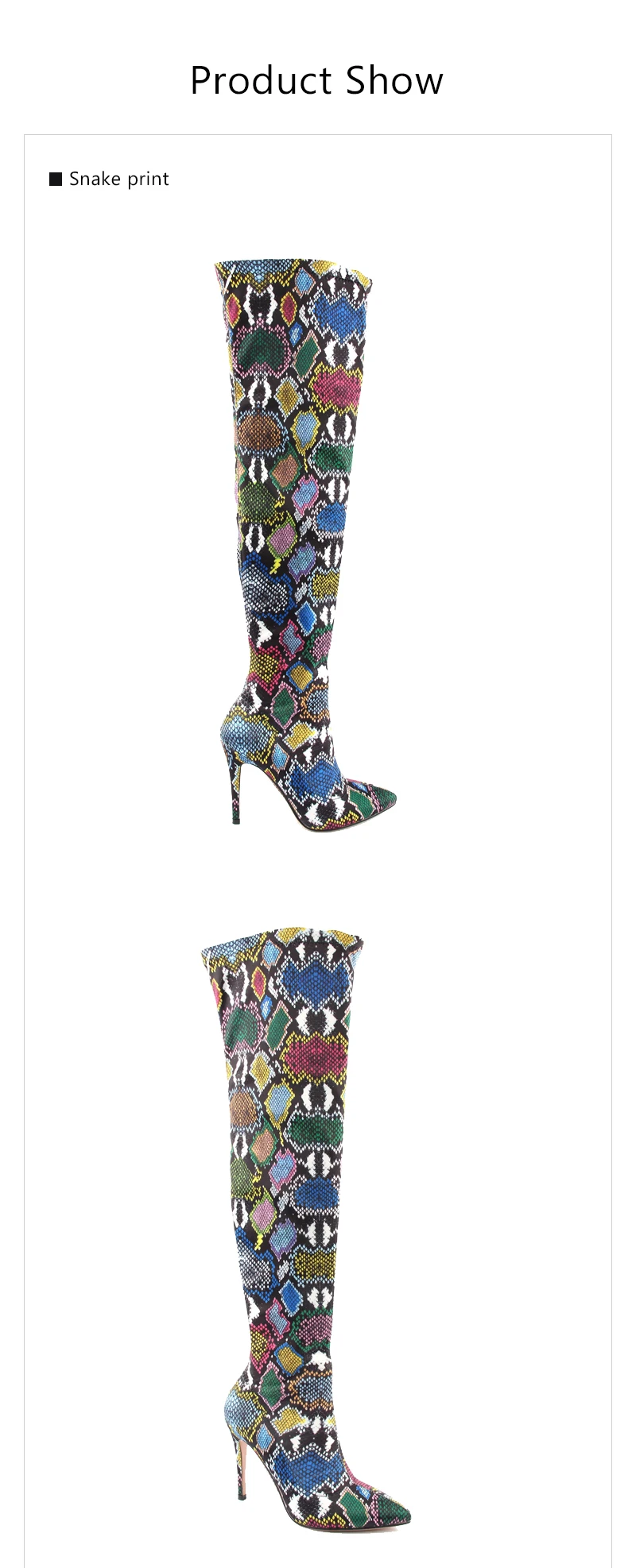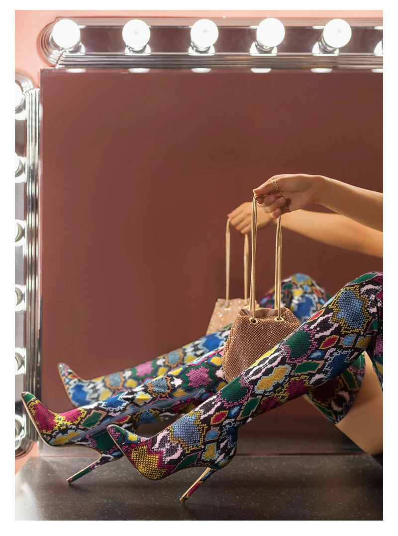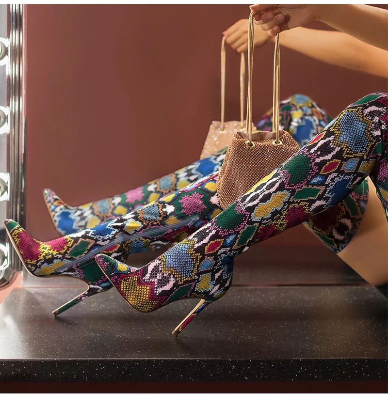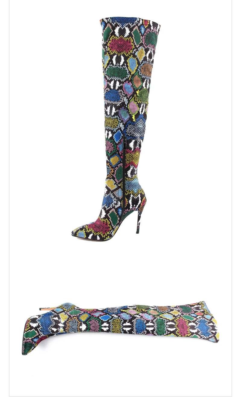 Multicolored Snake Print Over-The-Knee Boots Sexy Thin High Stretch Ladies Boots