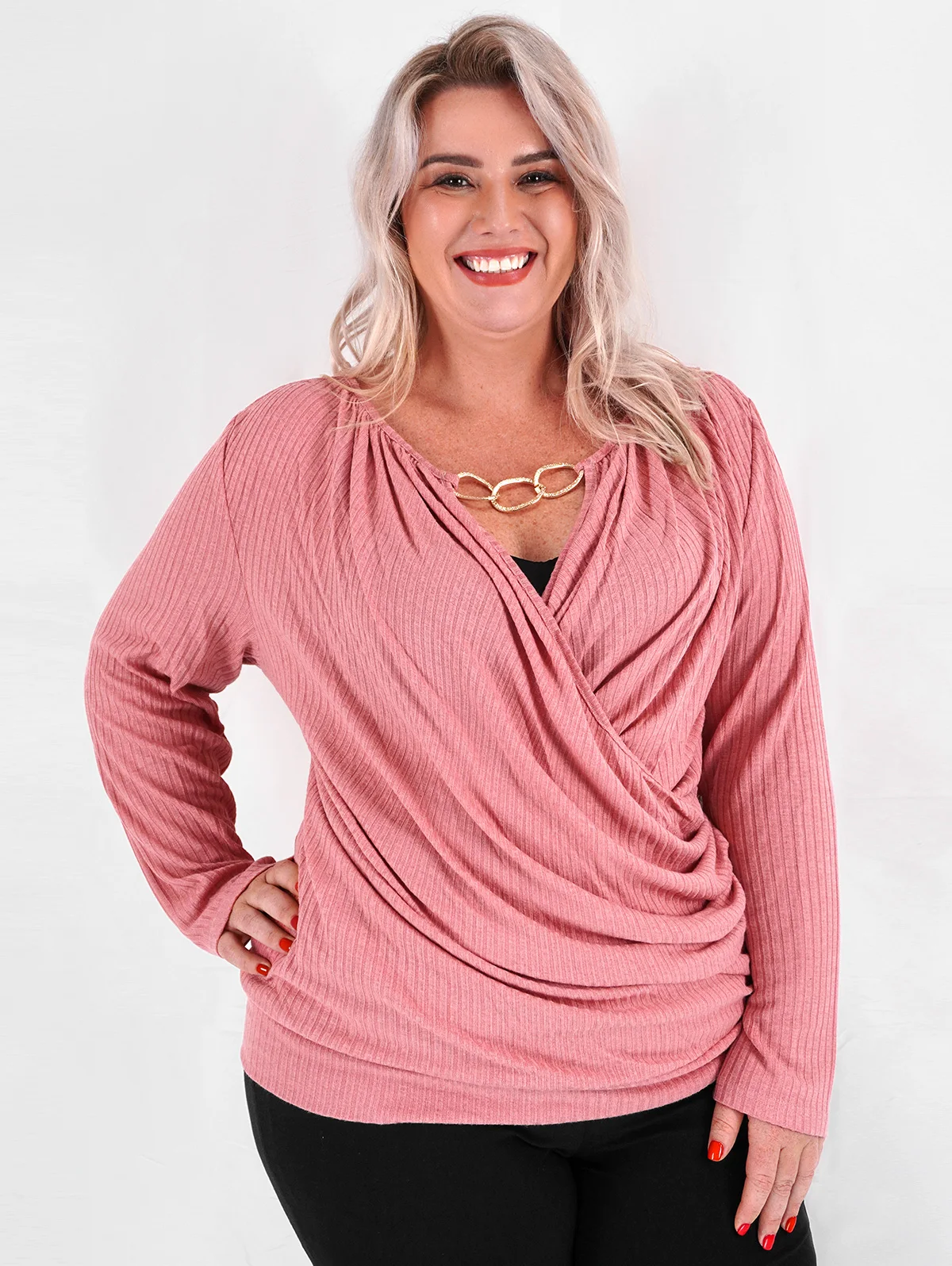 Model Number: Plus Size Chains Keyhole Draped Surplice T-shirt