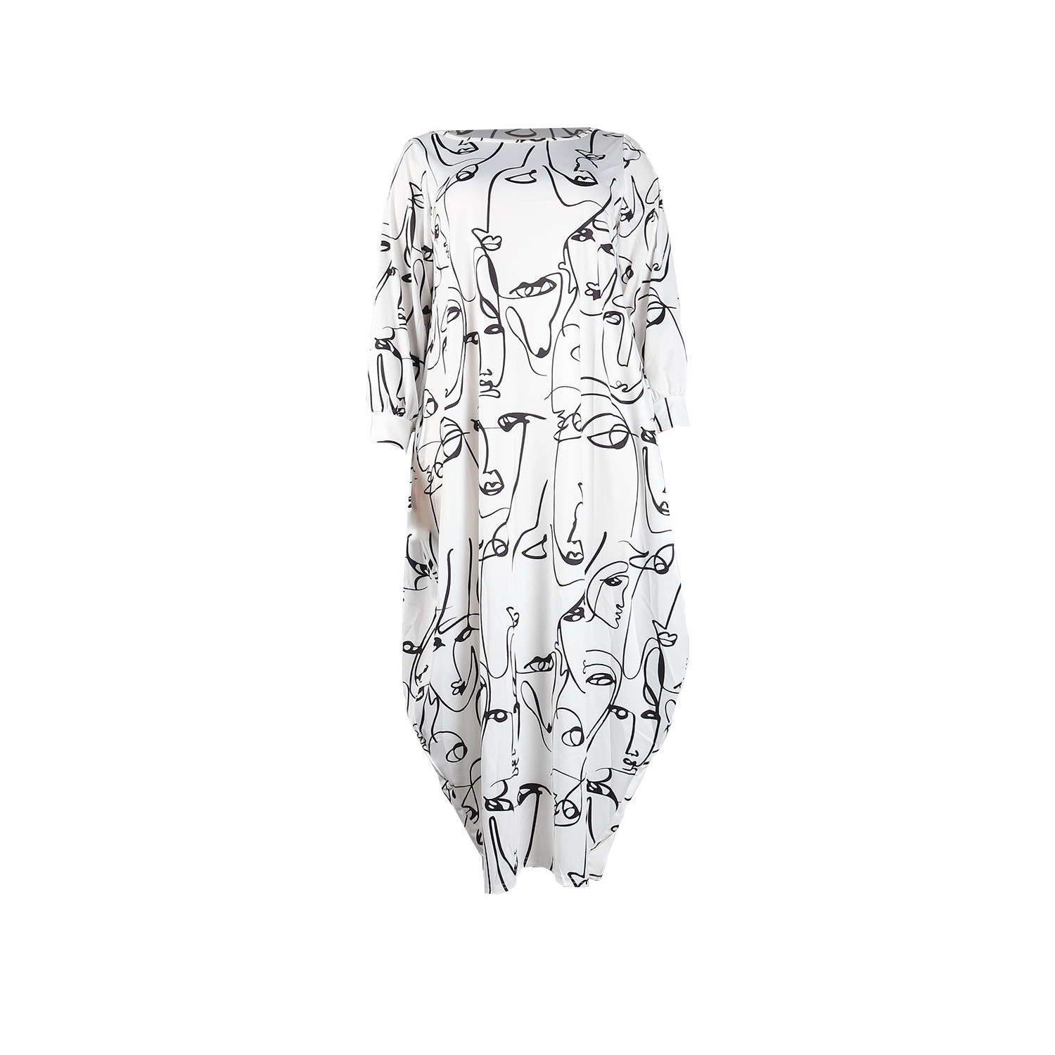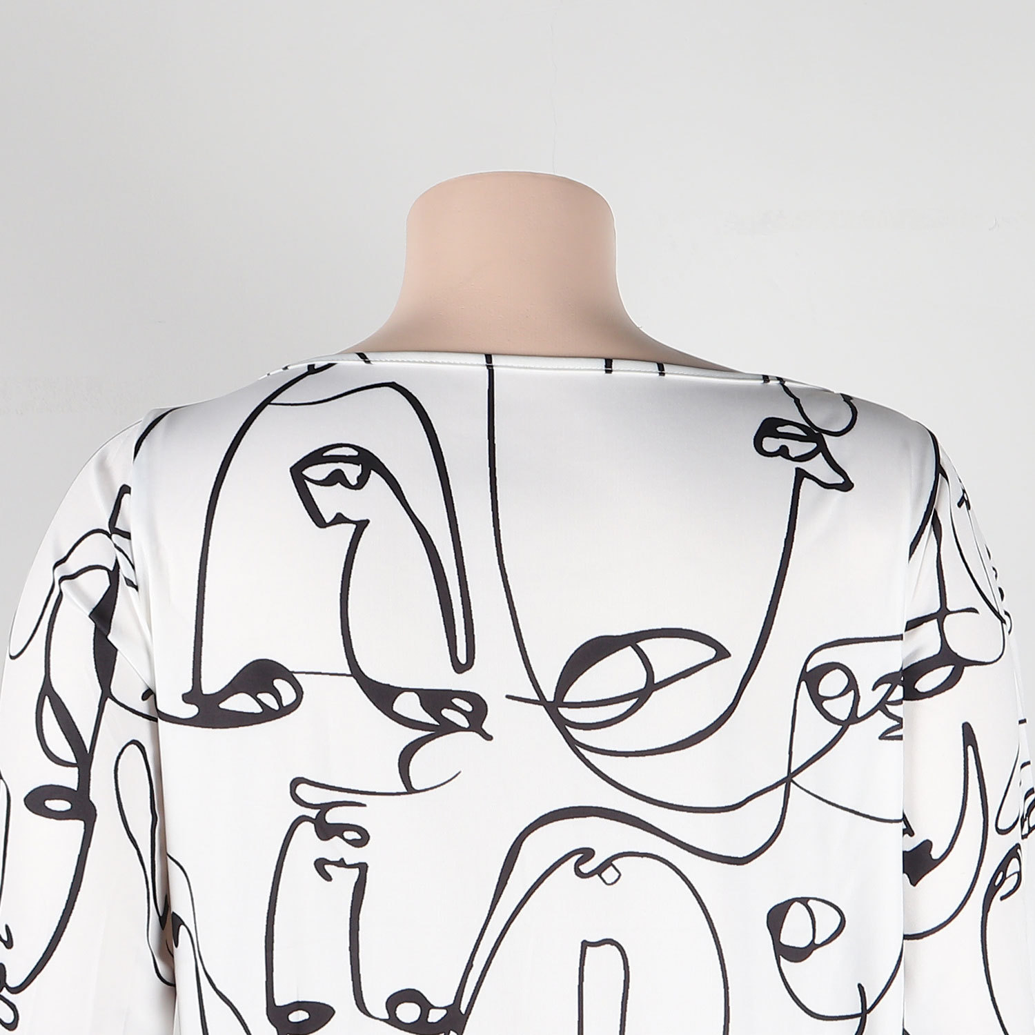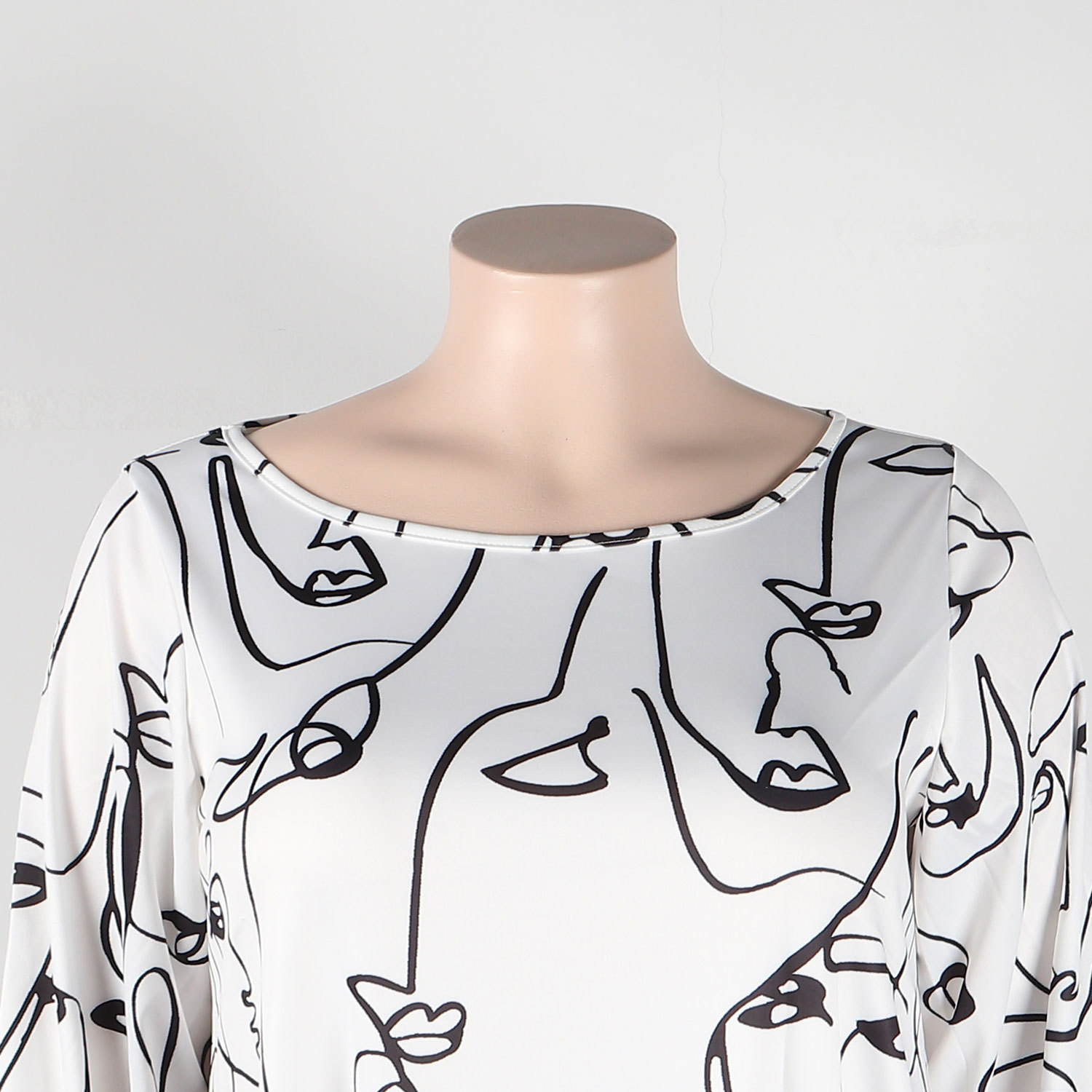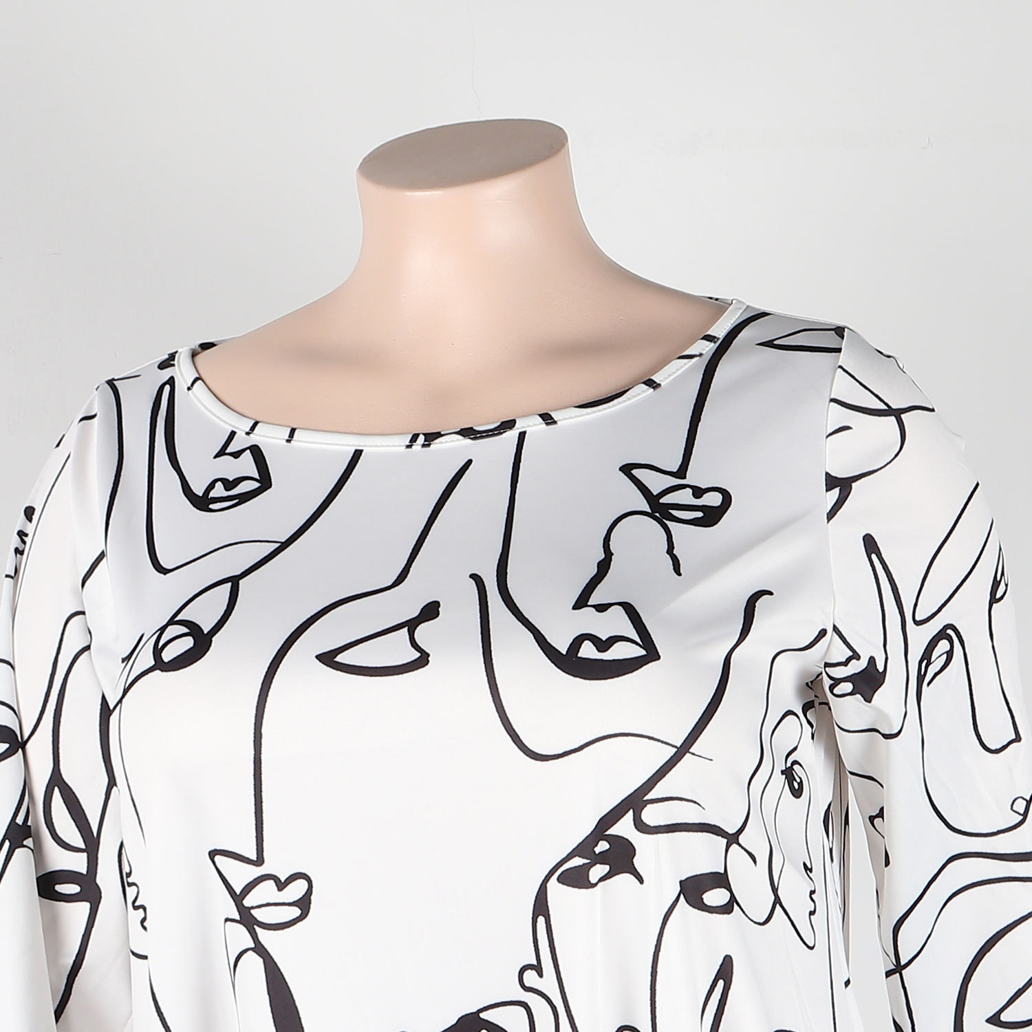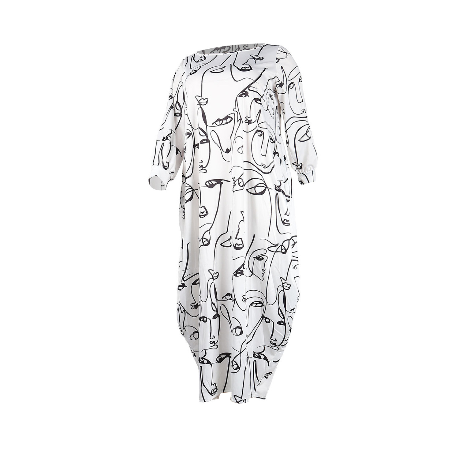 Loose Printed O Neck Off Shoulder Long Sleeve Maxi Dress
