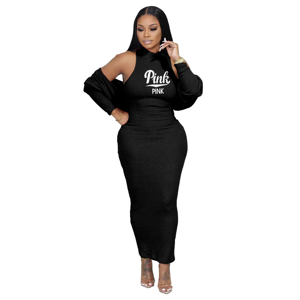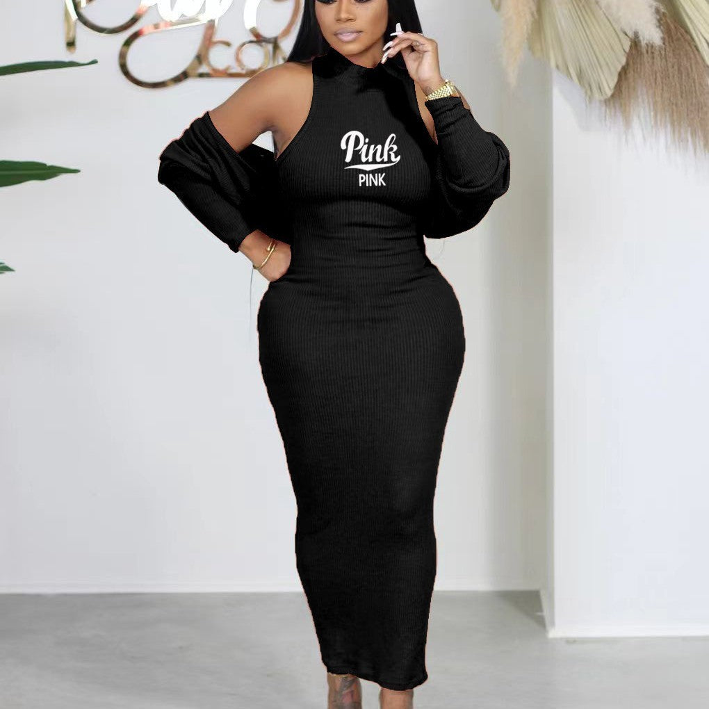 "Pink" Ribbed Knitted Women's Cardigan + Sleeveless Maxi Dress 2-Piece Set