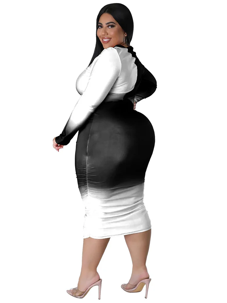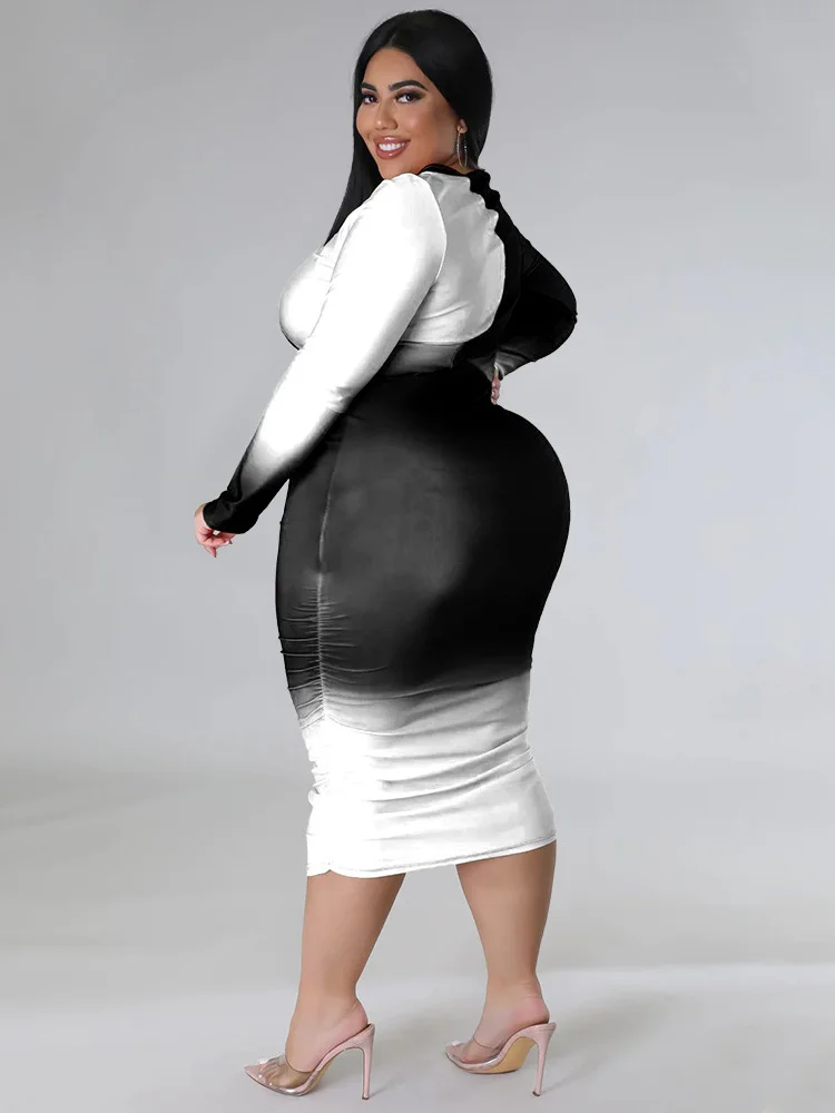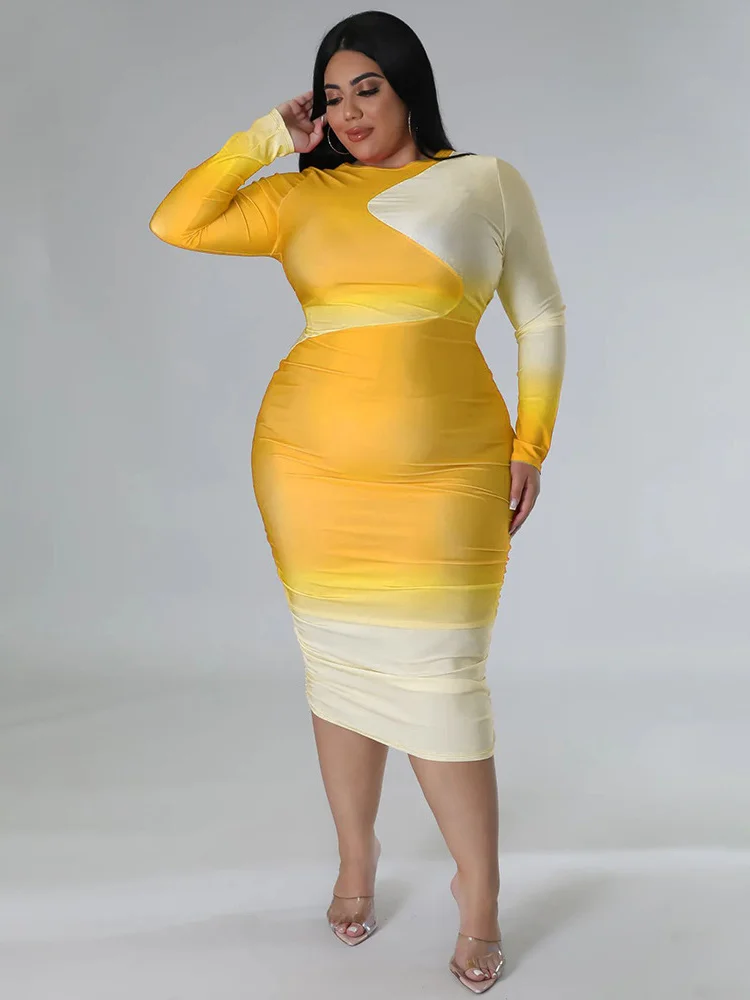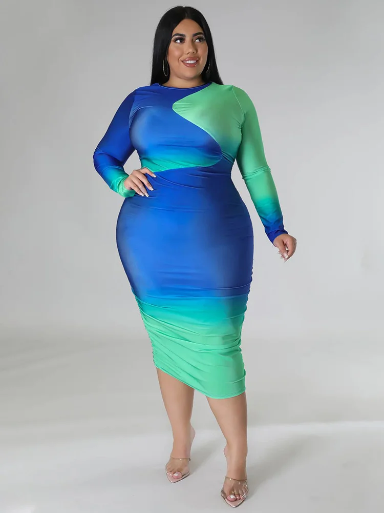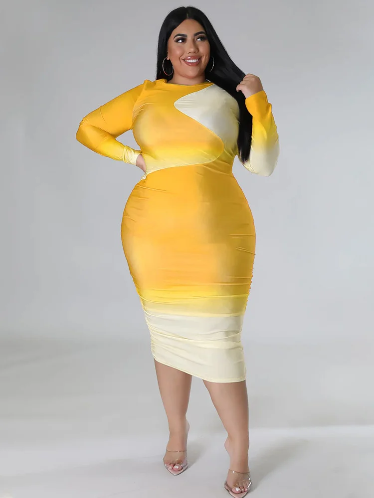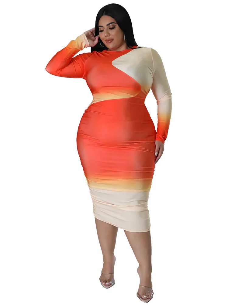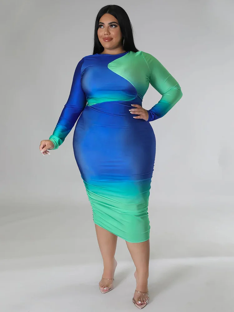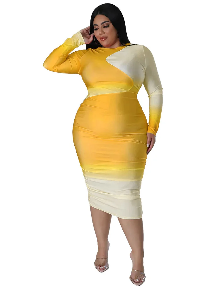 Colorblock Bodycon Strech Long Sleeve Patchwork Maxi Dress to 5X Plus Size