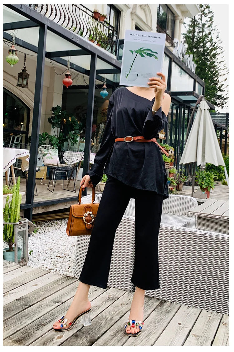 PVC Transparent Clear Crystal Rainbow Rhinestone Embellished Open Toe Low Heel Women's Sandals