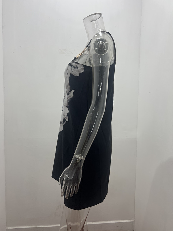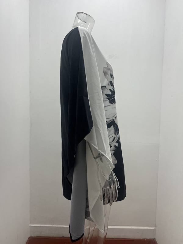 Asymmetrical Floral/Geometric Printed Chiffon One Shoulder Loose Vintage Ruffled Mini Dress to 5X Plus Size