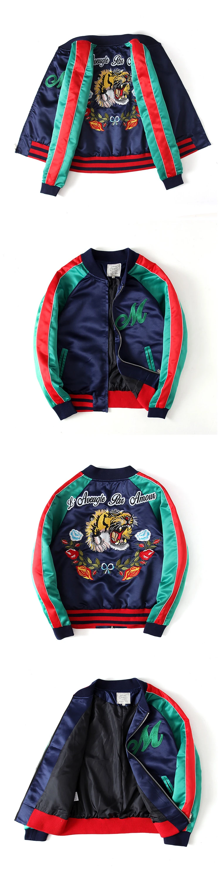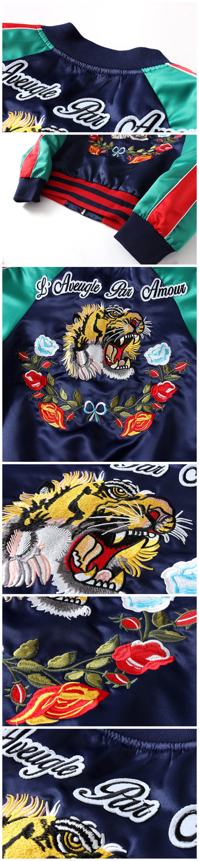 Vintage Ladies Tiger Head Embroidered Bomber Jacket