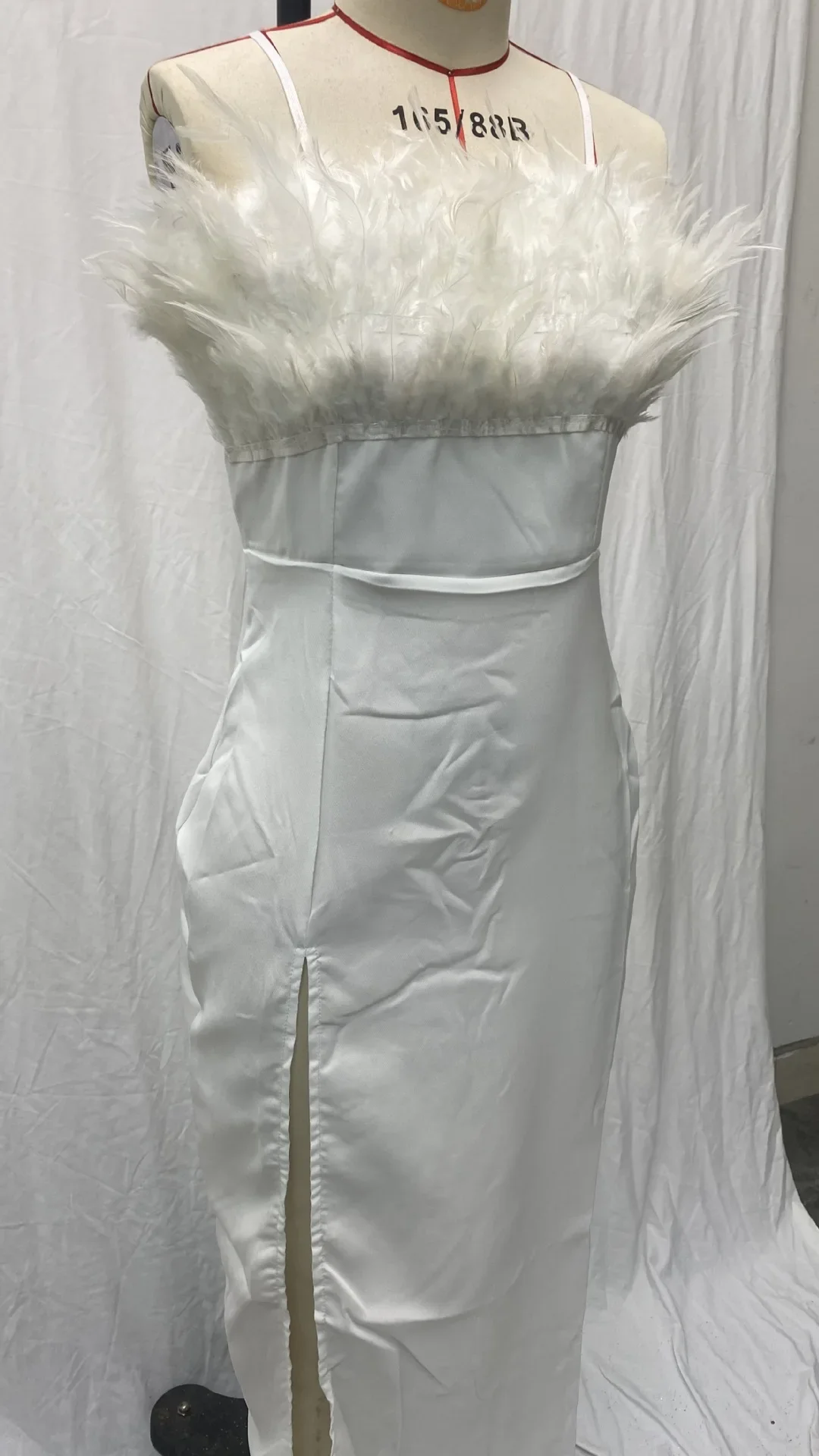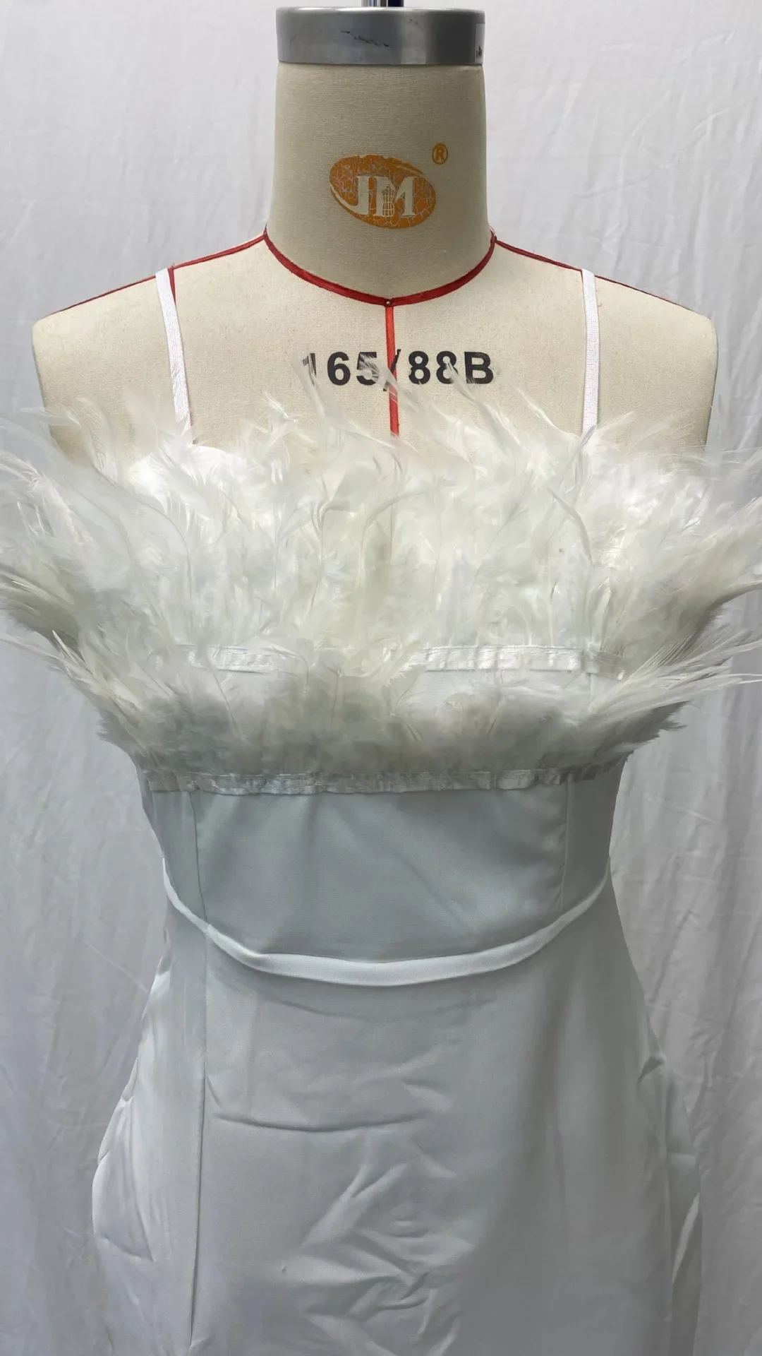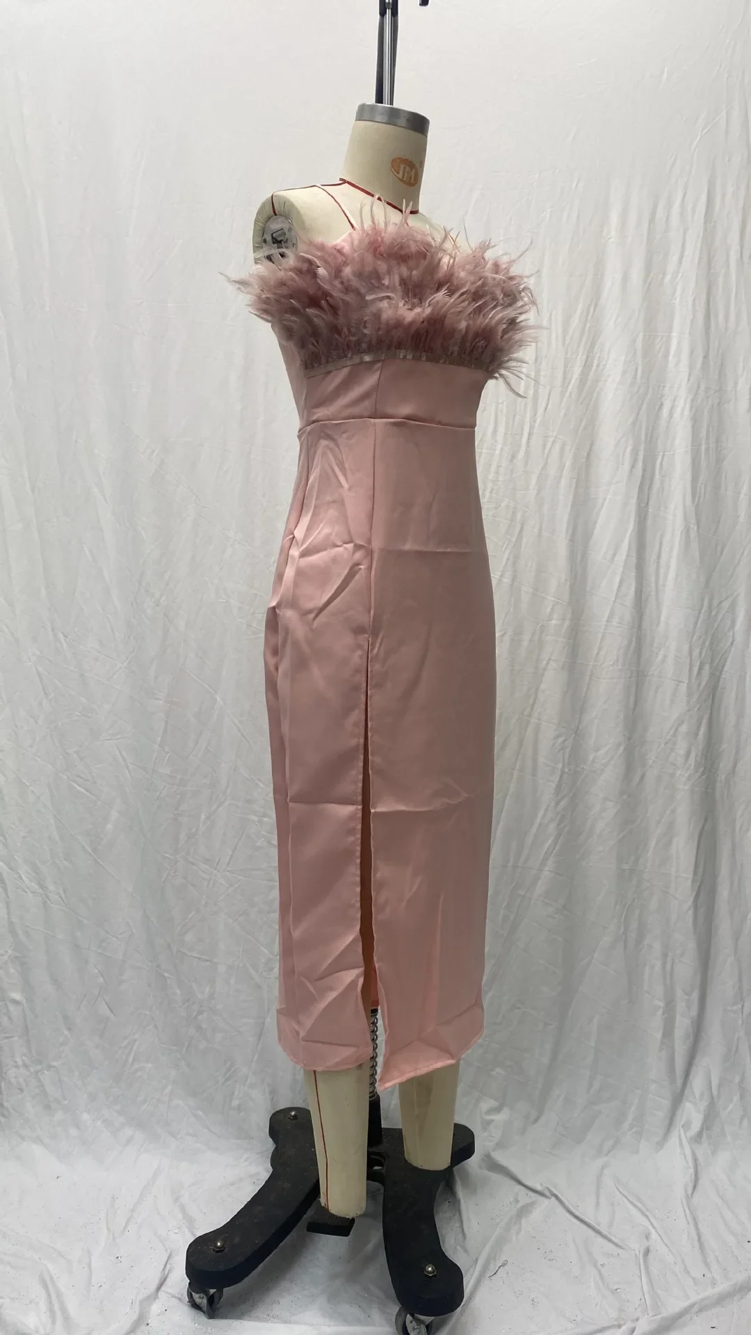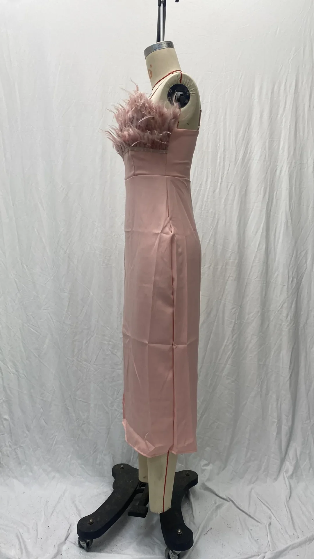 2024 New Cross-border Spring Summer Women's Fashion Tank Feather Dress Elegant Slimming Arm-covering Gown For Banquets