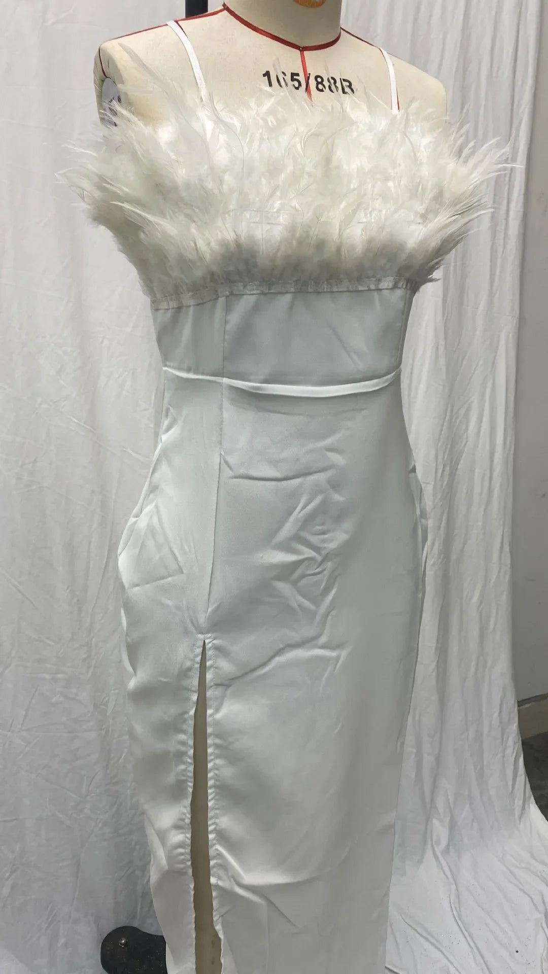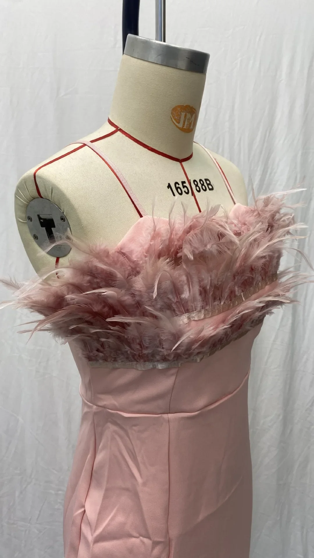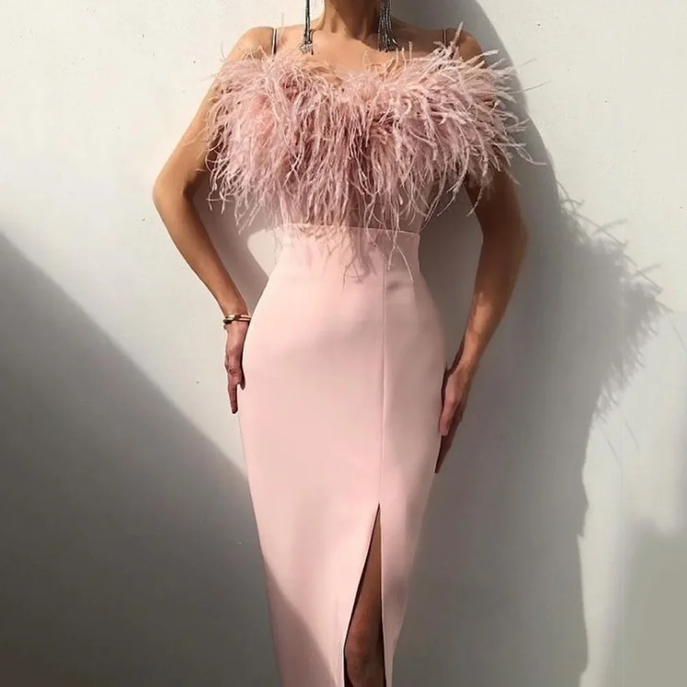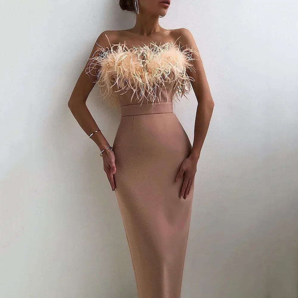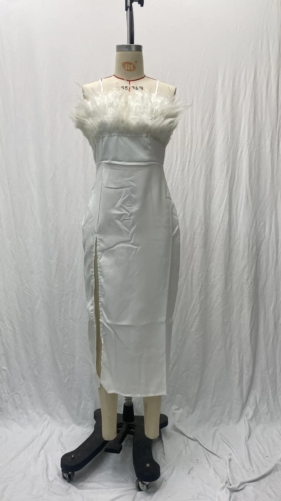 2024 New Cross-border Spring Summer Women's Fashion Tank Feather Dress Elegant Slimming Arm-covering Gown For Banquets