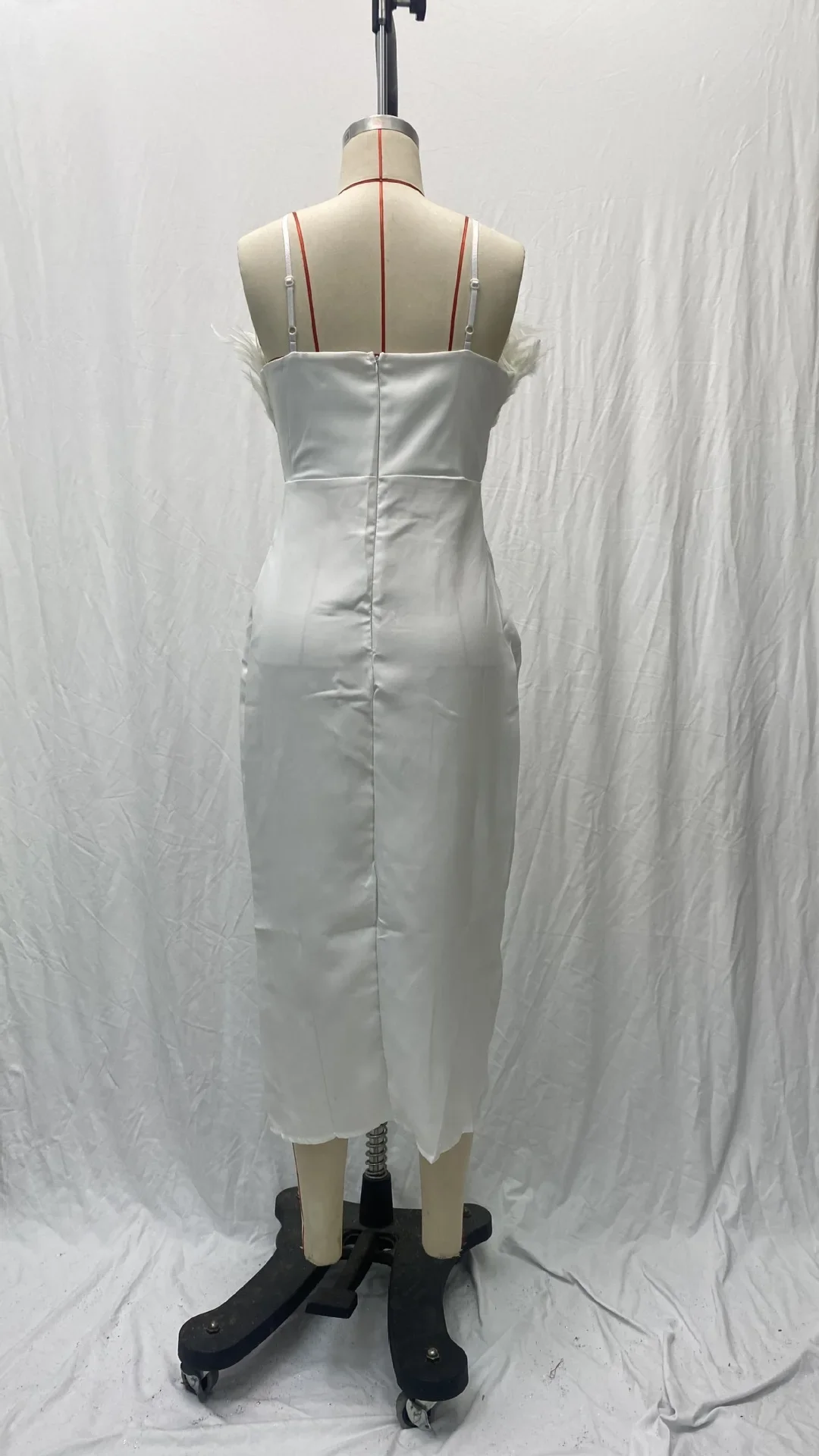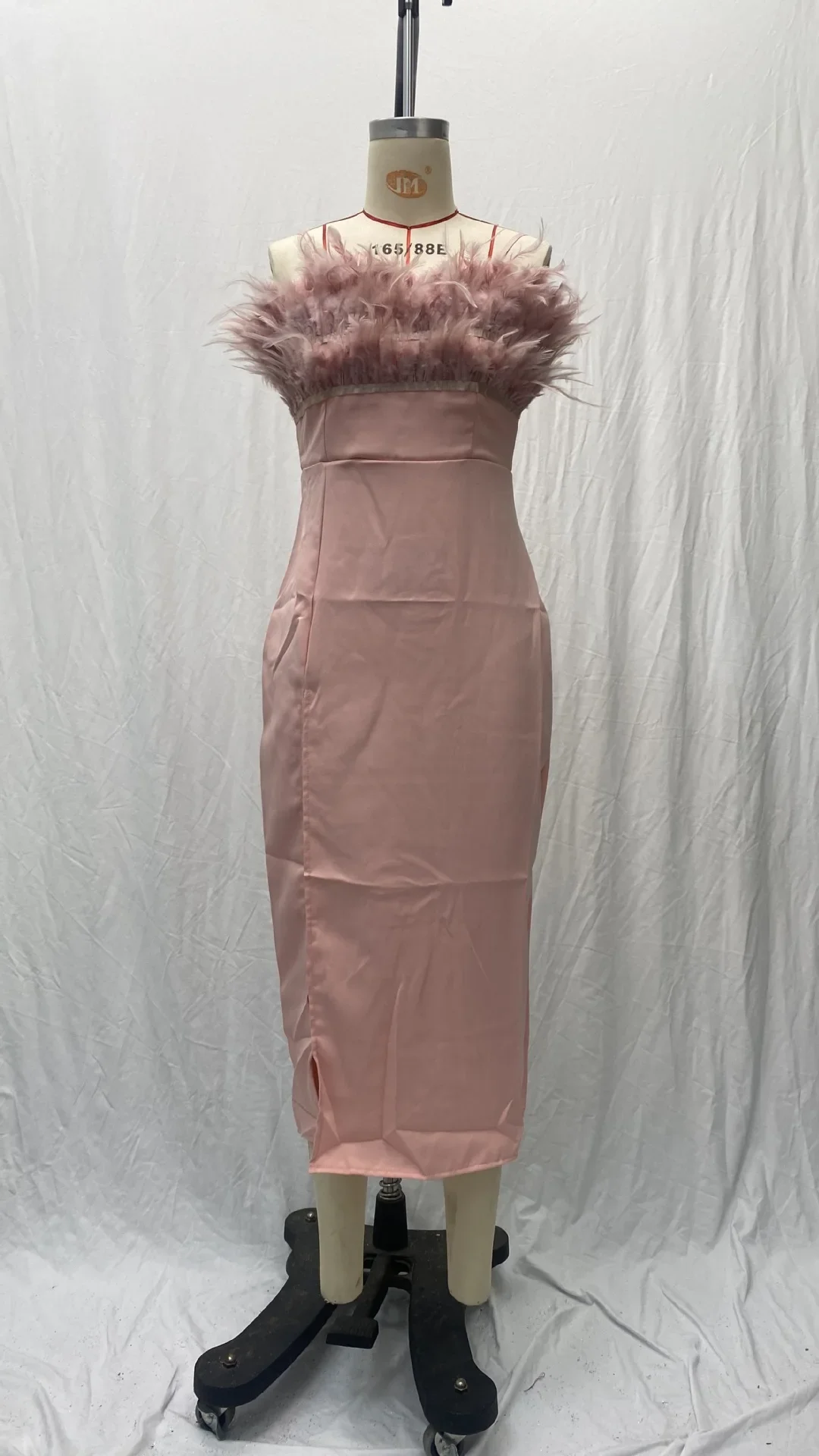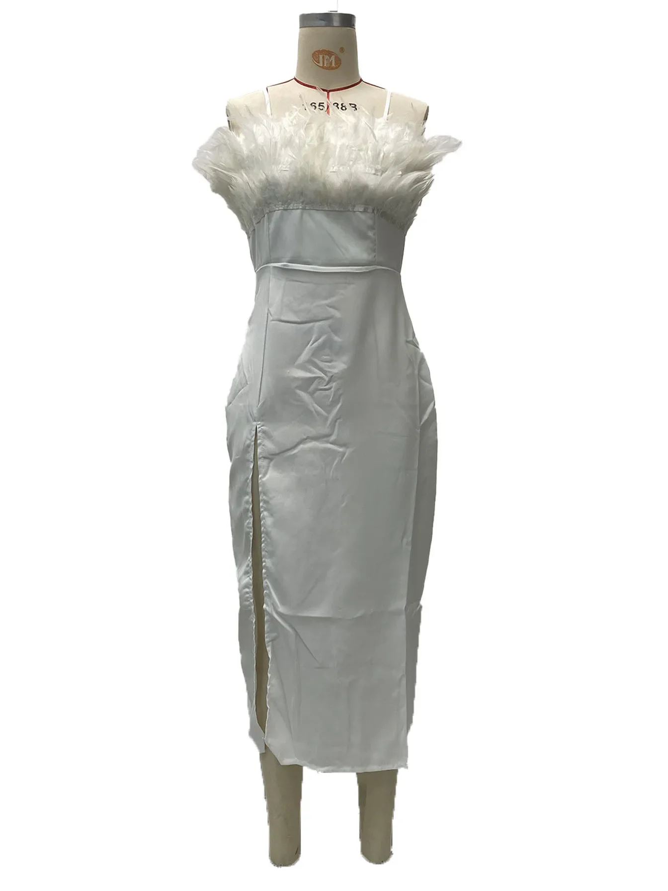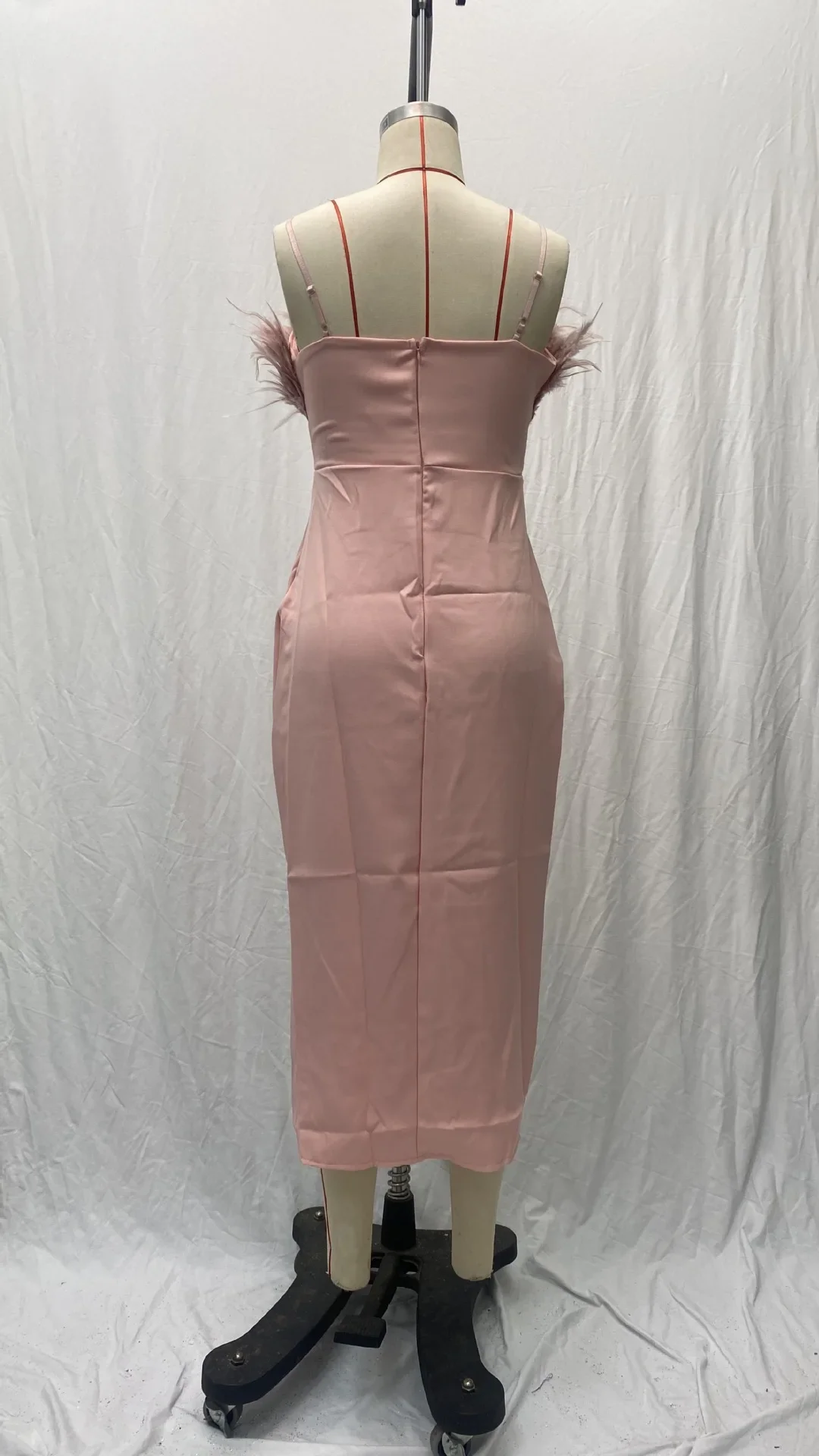 2024 New Cross-border Spring Summer Women's Fashion Tank Feather Dress Elegant Slimming Arm-covering Gown For Banquets