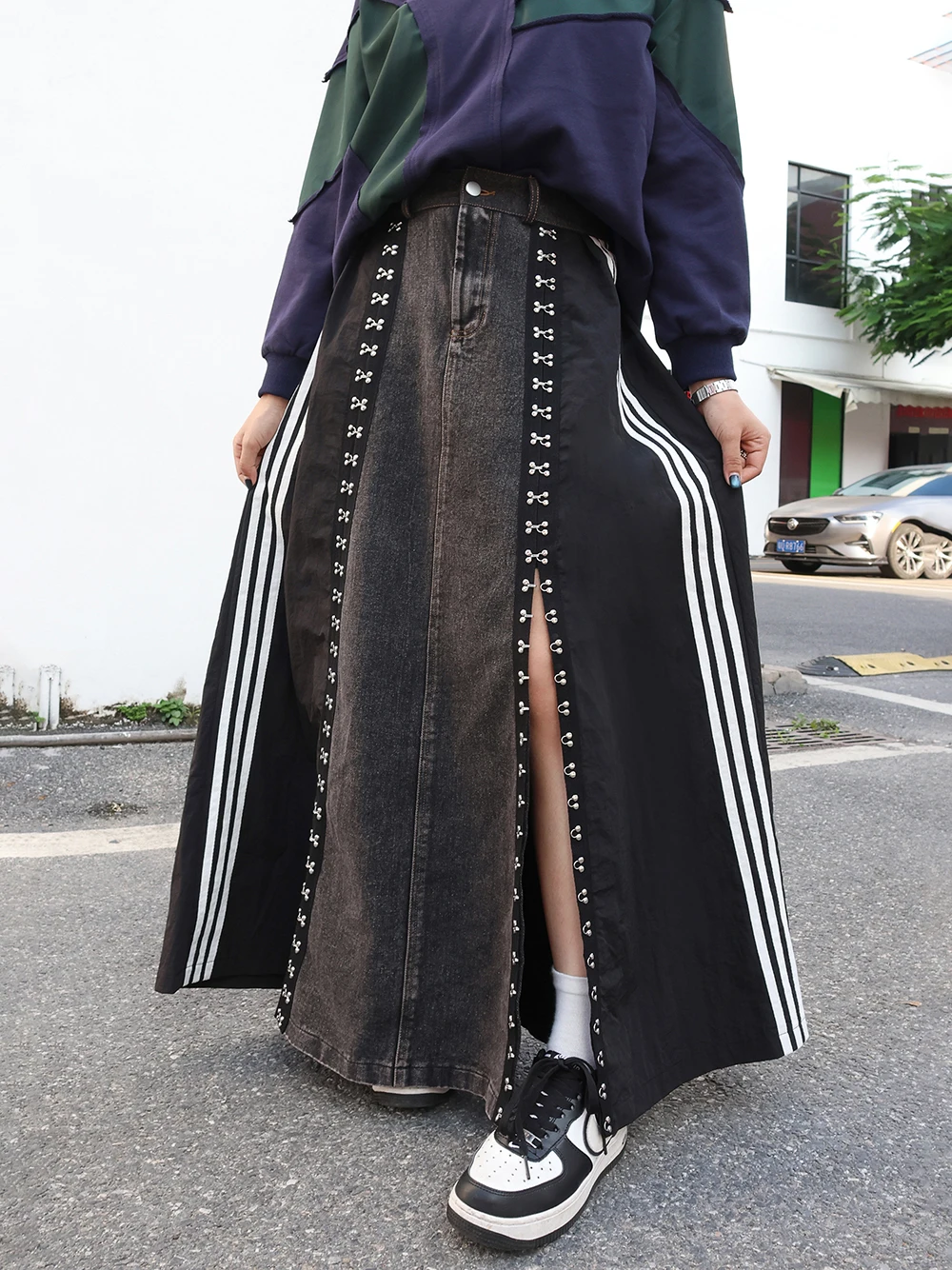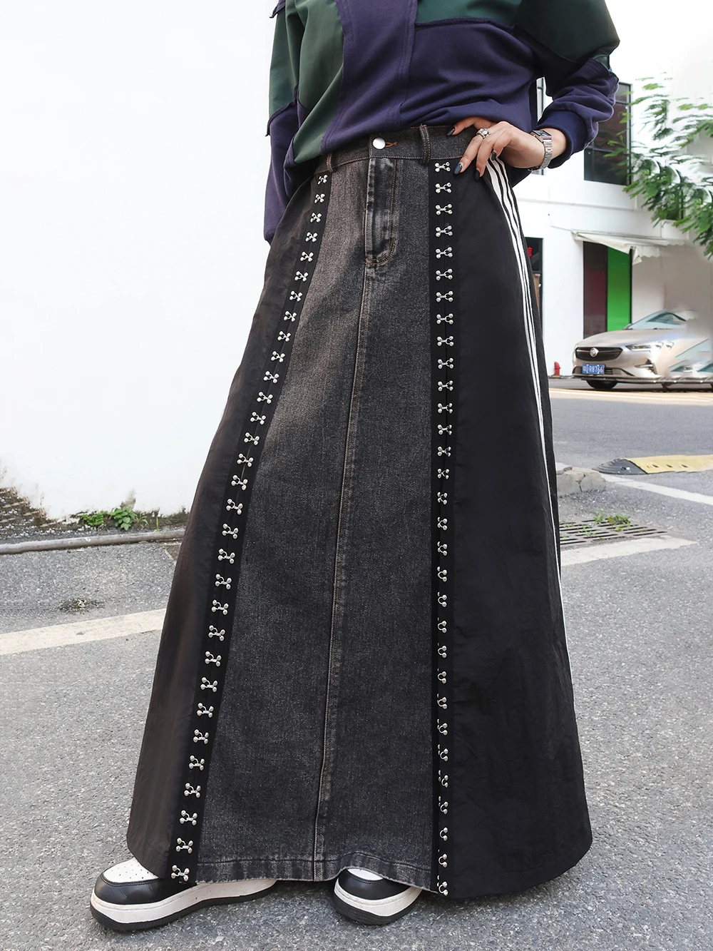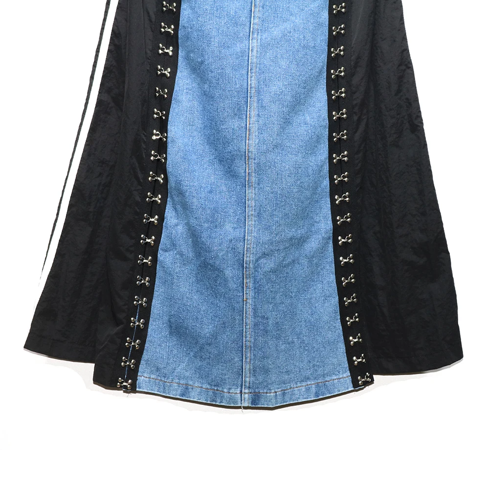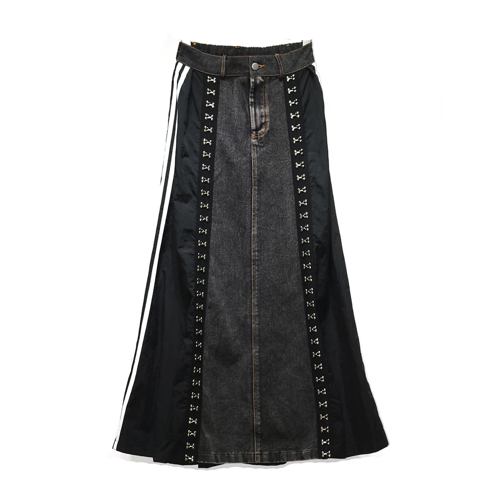 240939 European American Personalized Buttons Woman A-E Skirt Loose Plus Size Patchwork Denim Long Skirts Faldas Mujer Saias