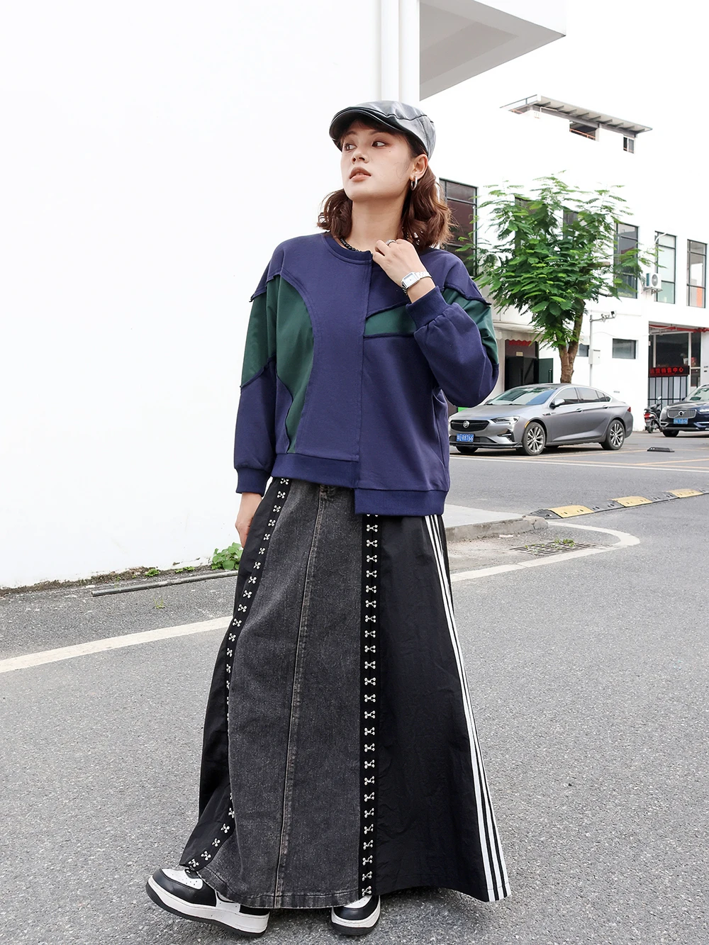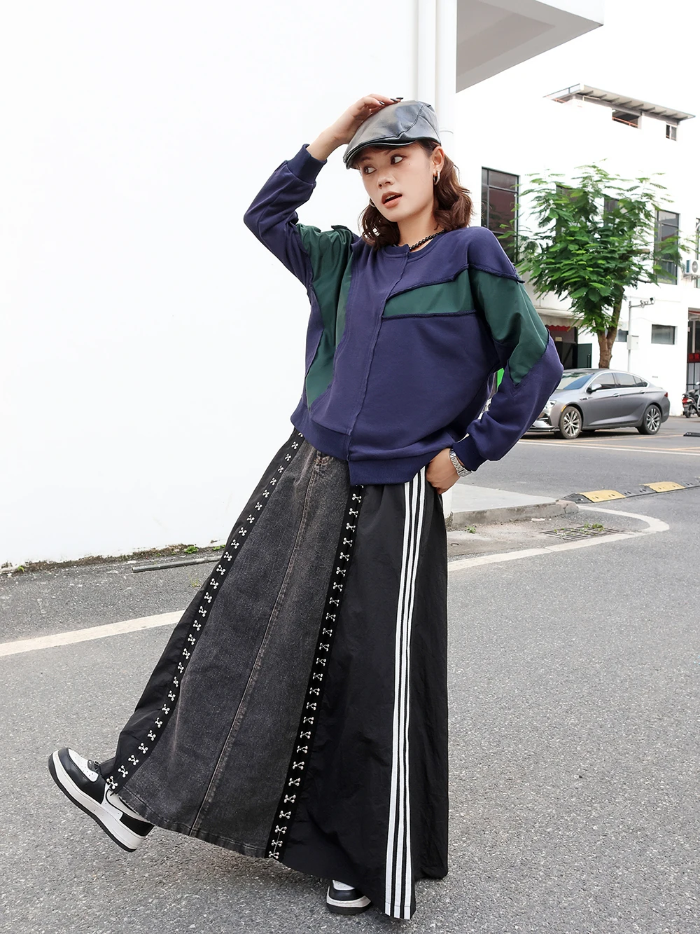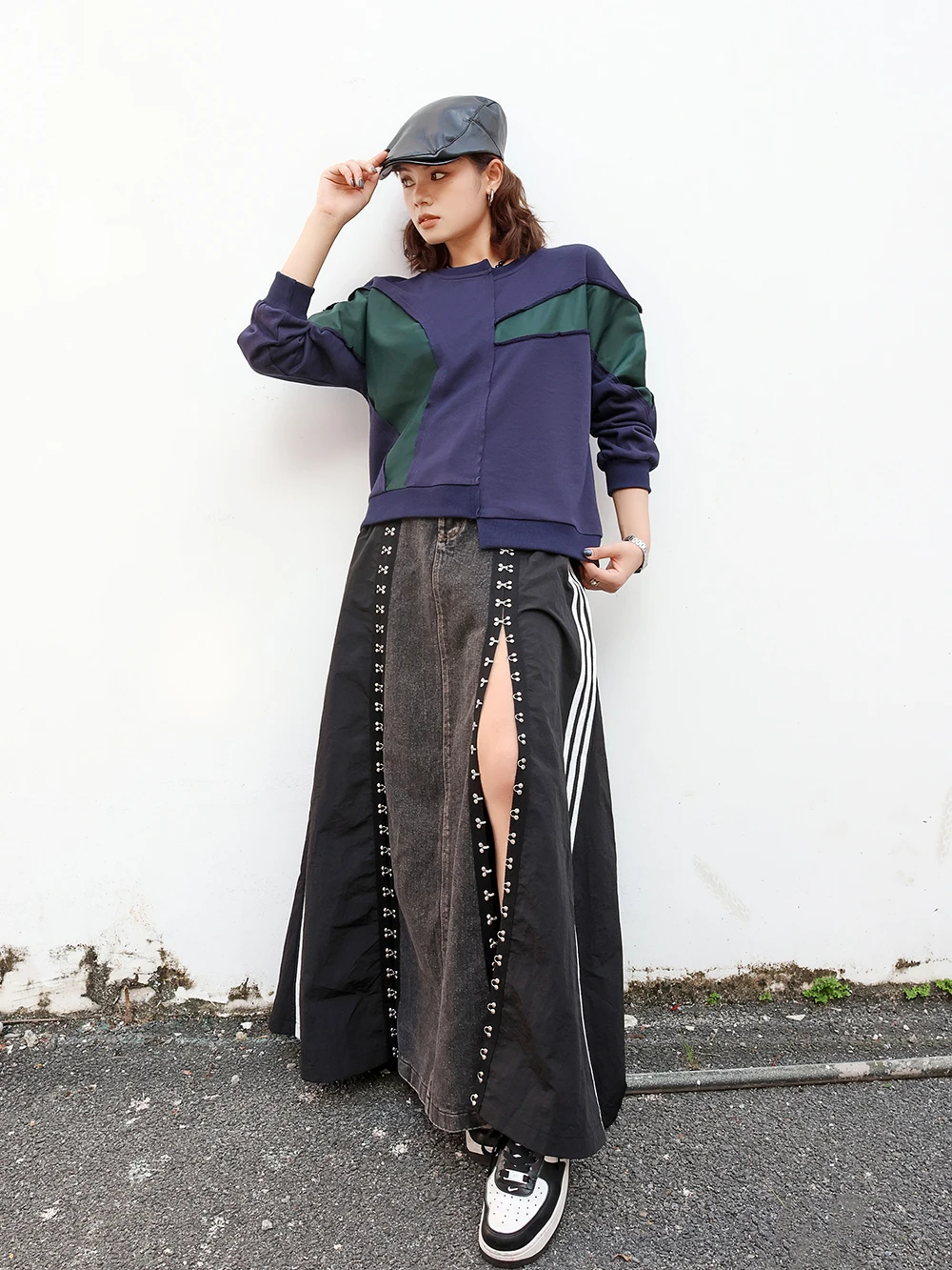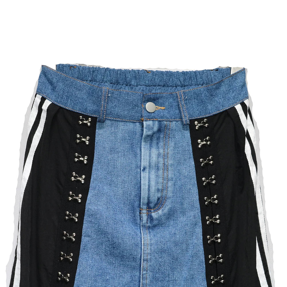 240939 European American Personalized Buttons Woman A-E Skirt Loose Plus Size Patchwork Denim Long Skirts Faldas Mujer Saias