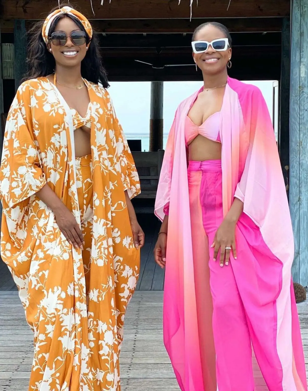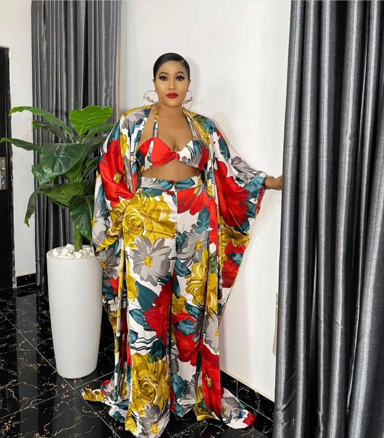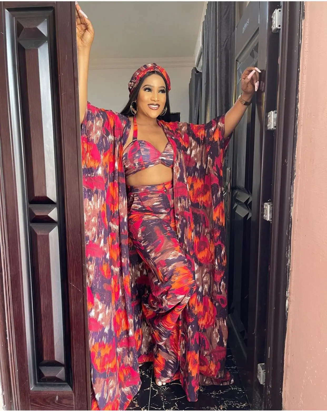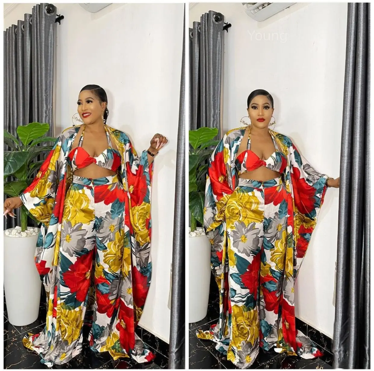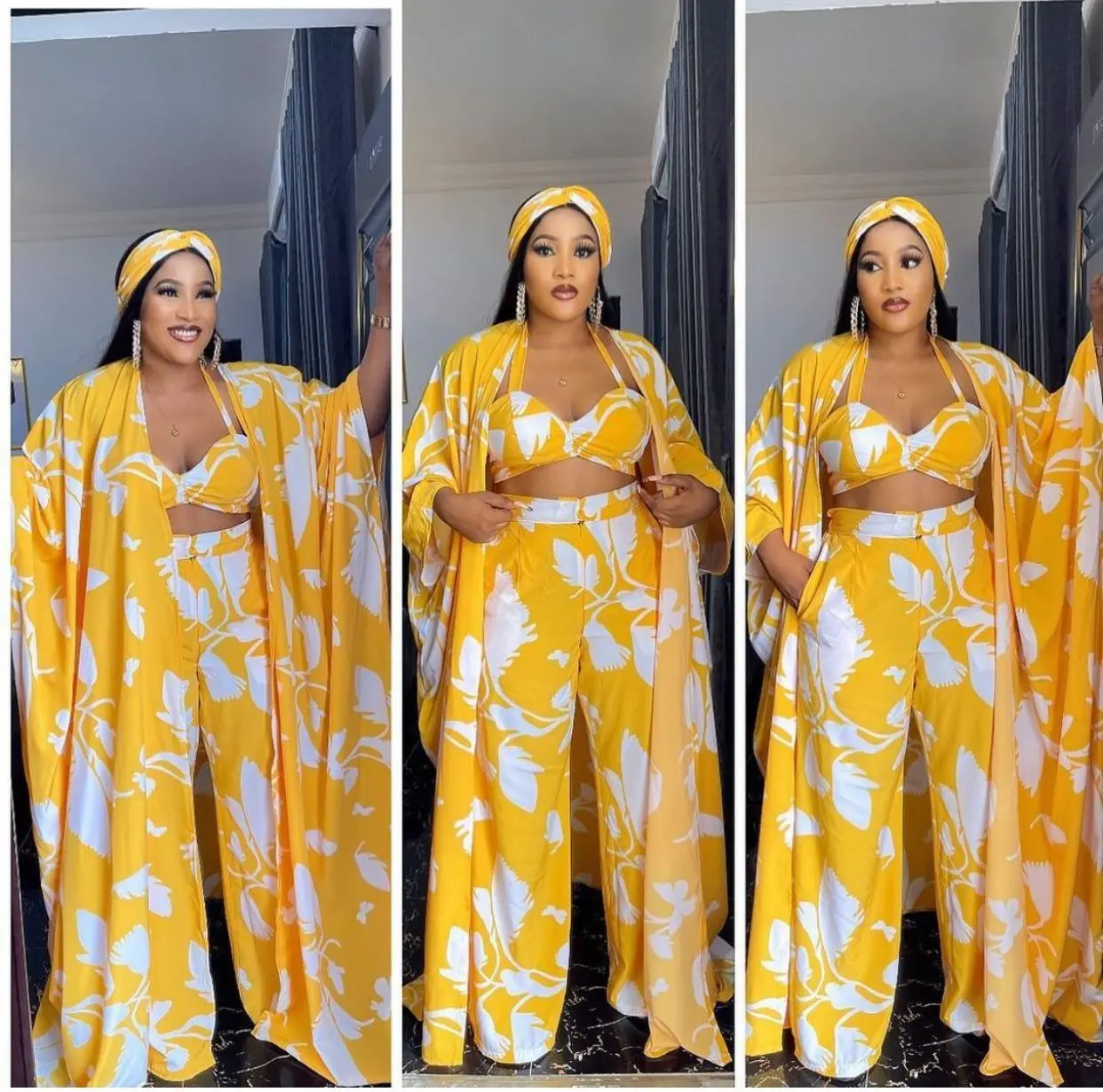 Silky Ladies' 4-Piece Set: Maxi Cardigan, Bra, Turban + Wide Pants