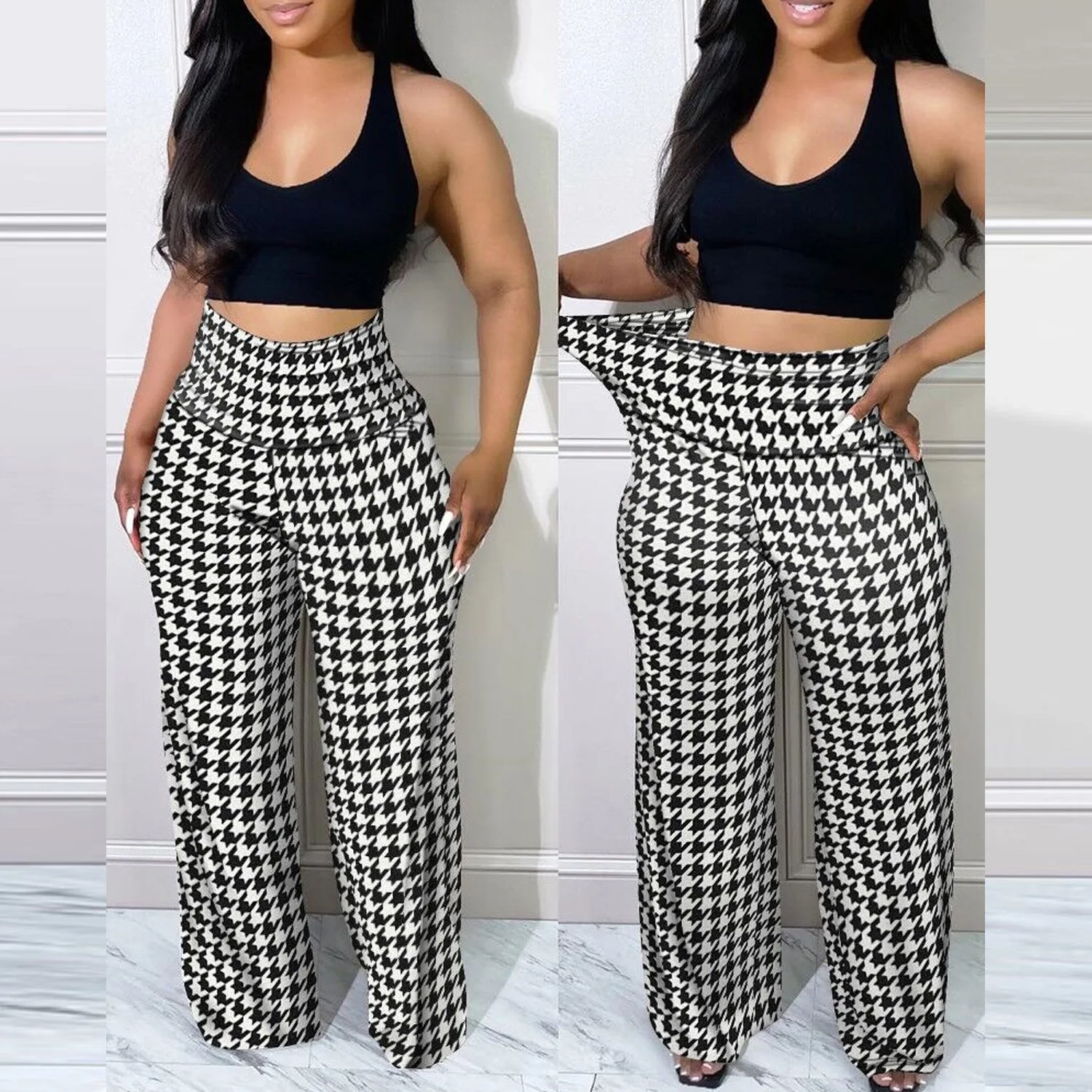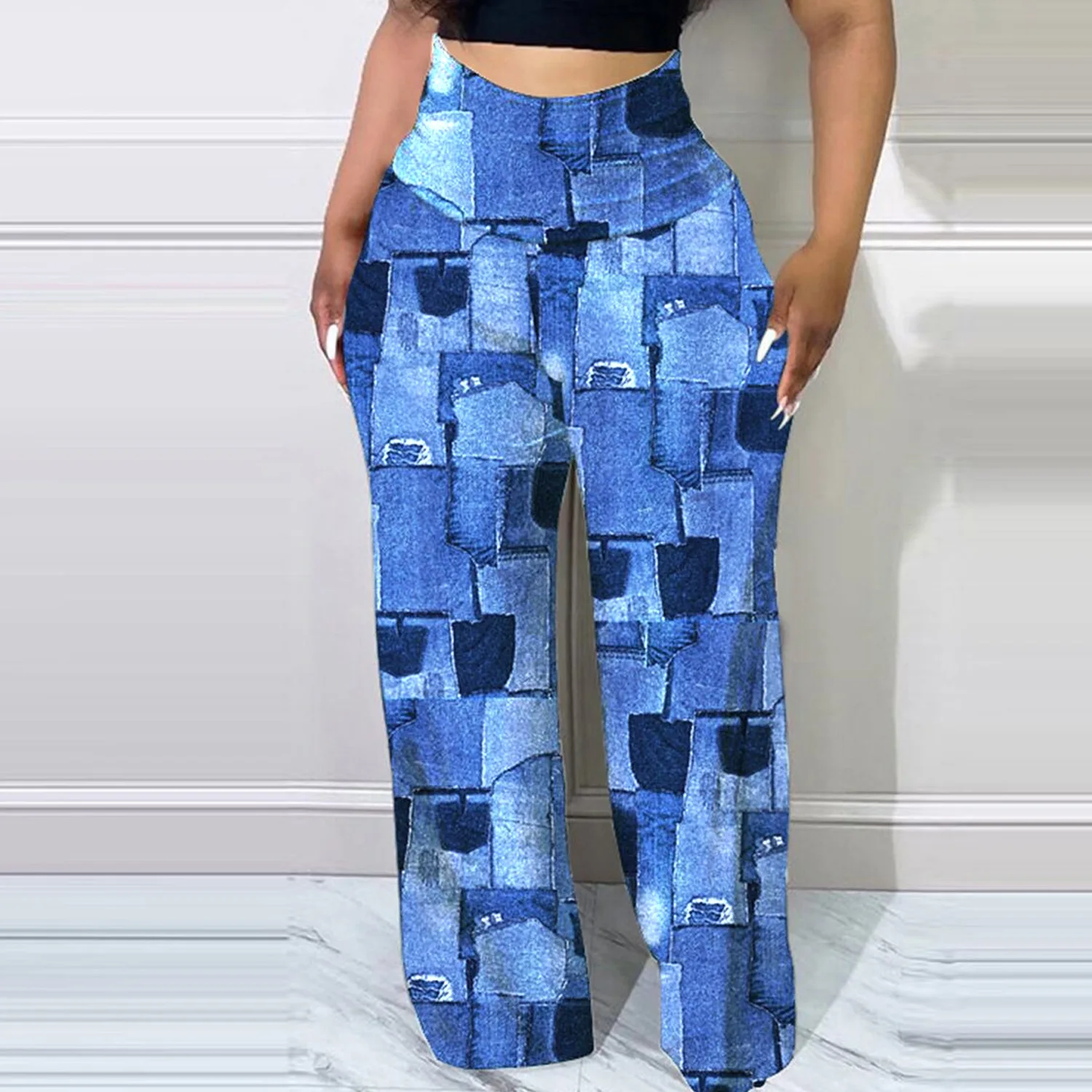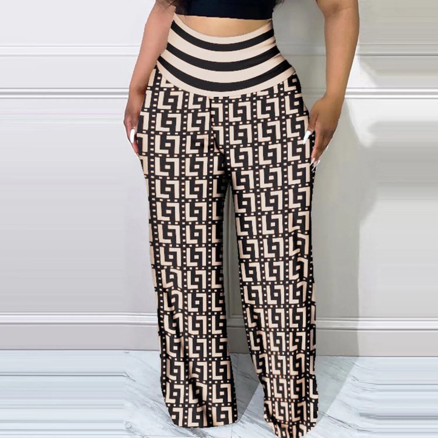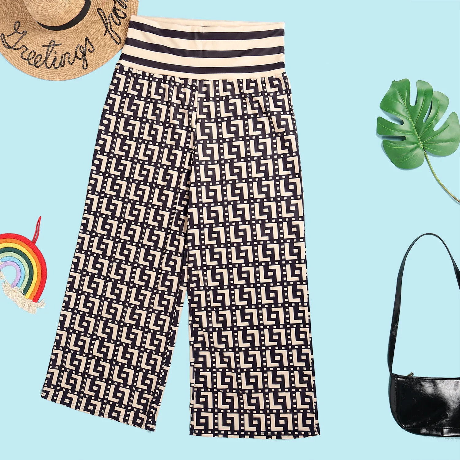 Geometric Print Wide Leg Ladies Pants